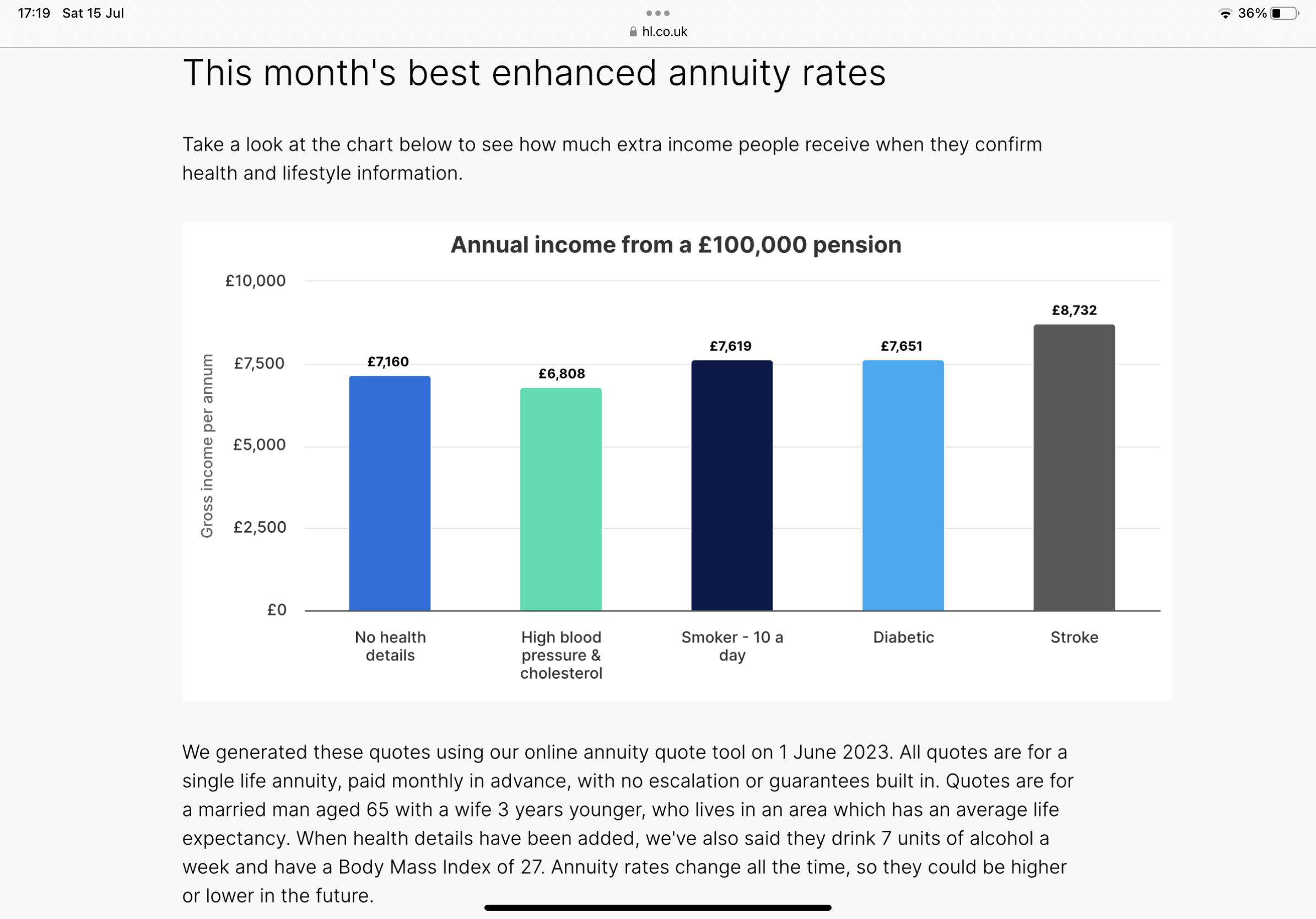 dunstonh said:Apparently if you have high blood pressure and high cholesterol you get a LOWER annuity rate than if you provided no health details.No, that is not possible.