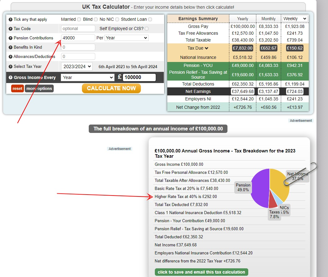 So if Im reading this correctly, if I earn £100k, i would need to contribute £49k to only pay £292 tax at the higher rate.
