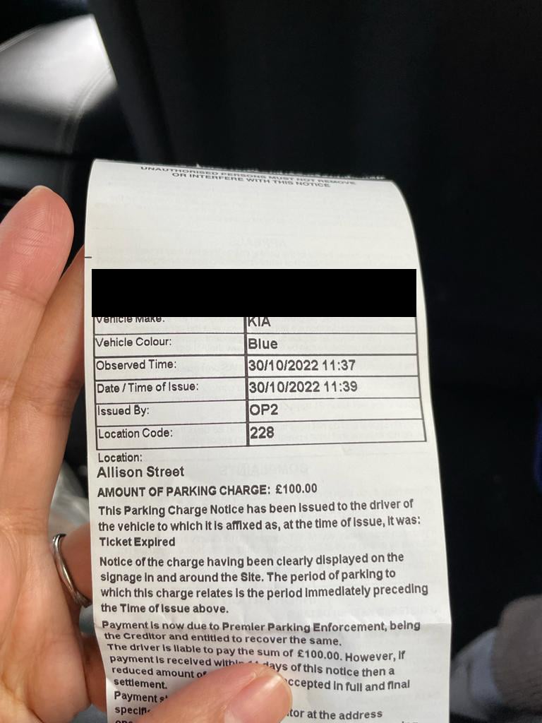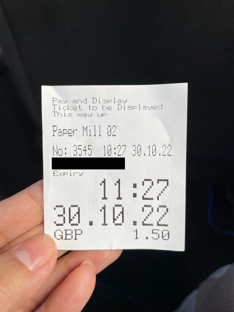 It started as a fine from a private car park. The signage was not very clear. My father paid £1.50 cash for two hours, the ticket was printed and displayed. (There was no way of paying digitally or by app).