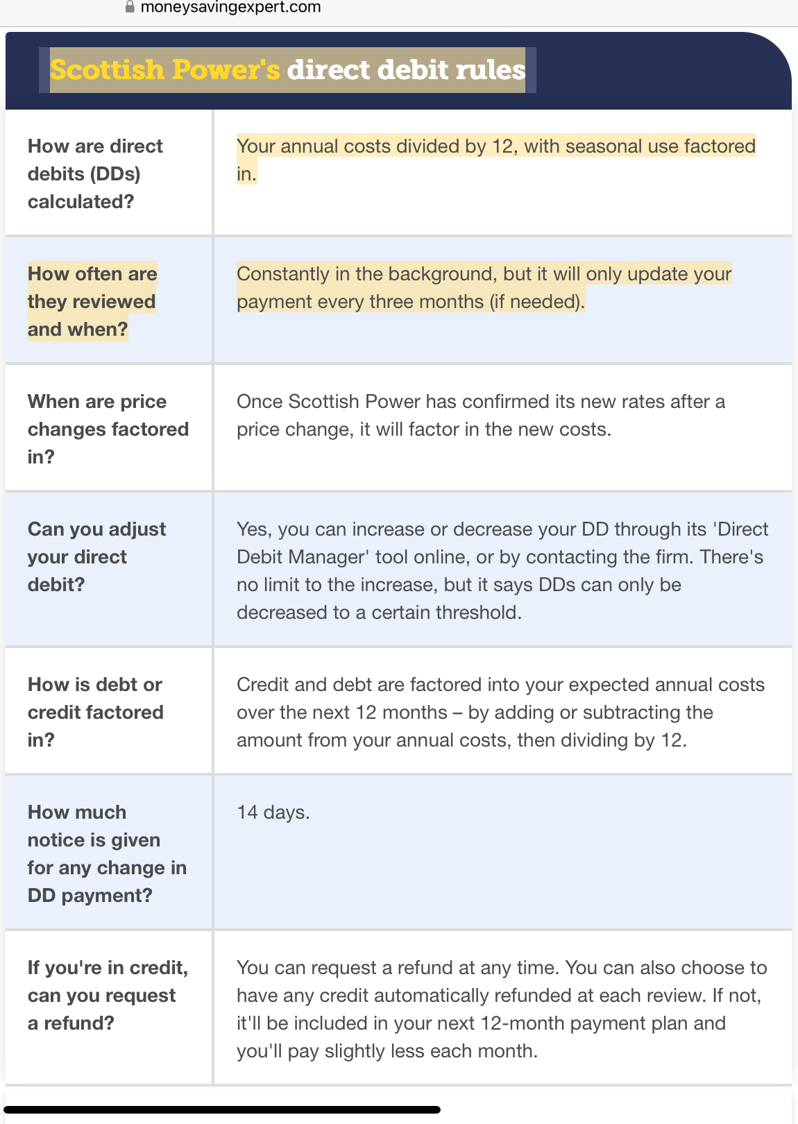 Any complaint raised against SP would have to show that the supplier failed to follow its stated DD review process. A good start would be to calculate an annual cost based on actual meter readings 12 months apart taking into account future tariff costs. Note: all suppliers make an algorithm-based adjustment to annual estimates to allow for seasonal variations. Last Winter was unseasonably warm. As you can see, if you disagree with SP’s DD calculation you have the ability to reduce the DD payment within limits.0 -