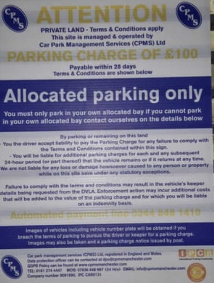 CPMS seem to think it's OK to add fake (double recovery of the letter chain) fees or costs that aren't specified in the sign, just because they have small print saying they can charge what they like 'on an indemnity basis'.
