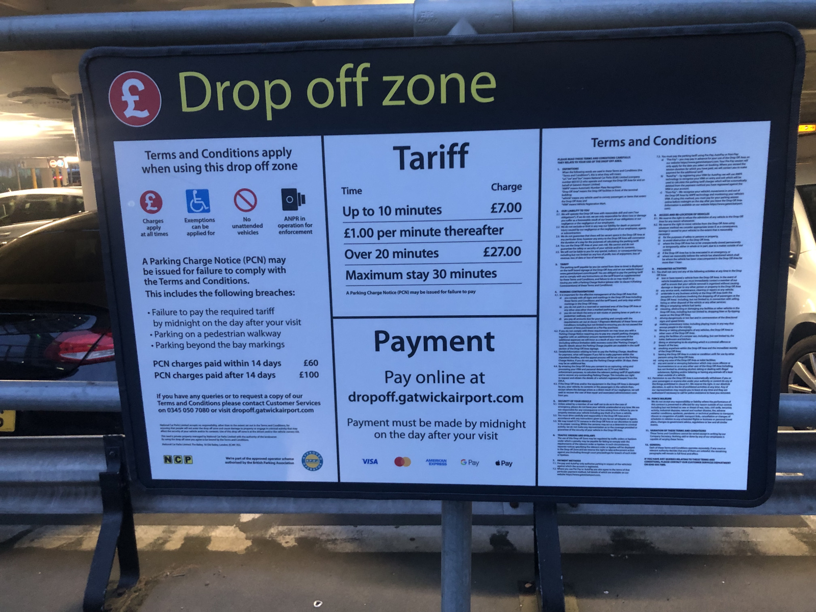 Here's a picture of the woeful Gatwick signs, taken by a relative as we dropped off a friend this weekend (... hello NCP...).