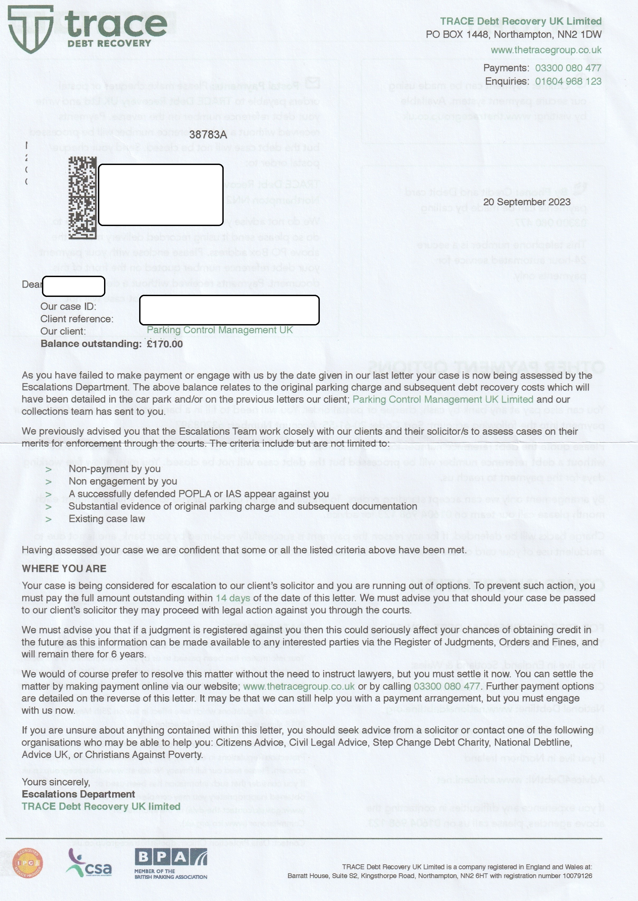Just got the first debt enforcement letter from "TRACE debt recover", interestingly they have the same return address as PCM. Sit tight now for the LBCs?1 -