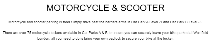 Their motorcycle parking policy is different at each site.