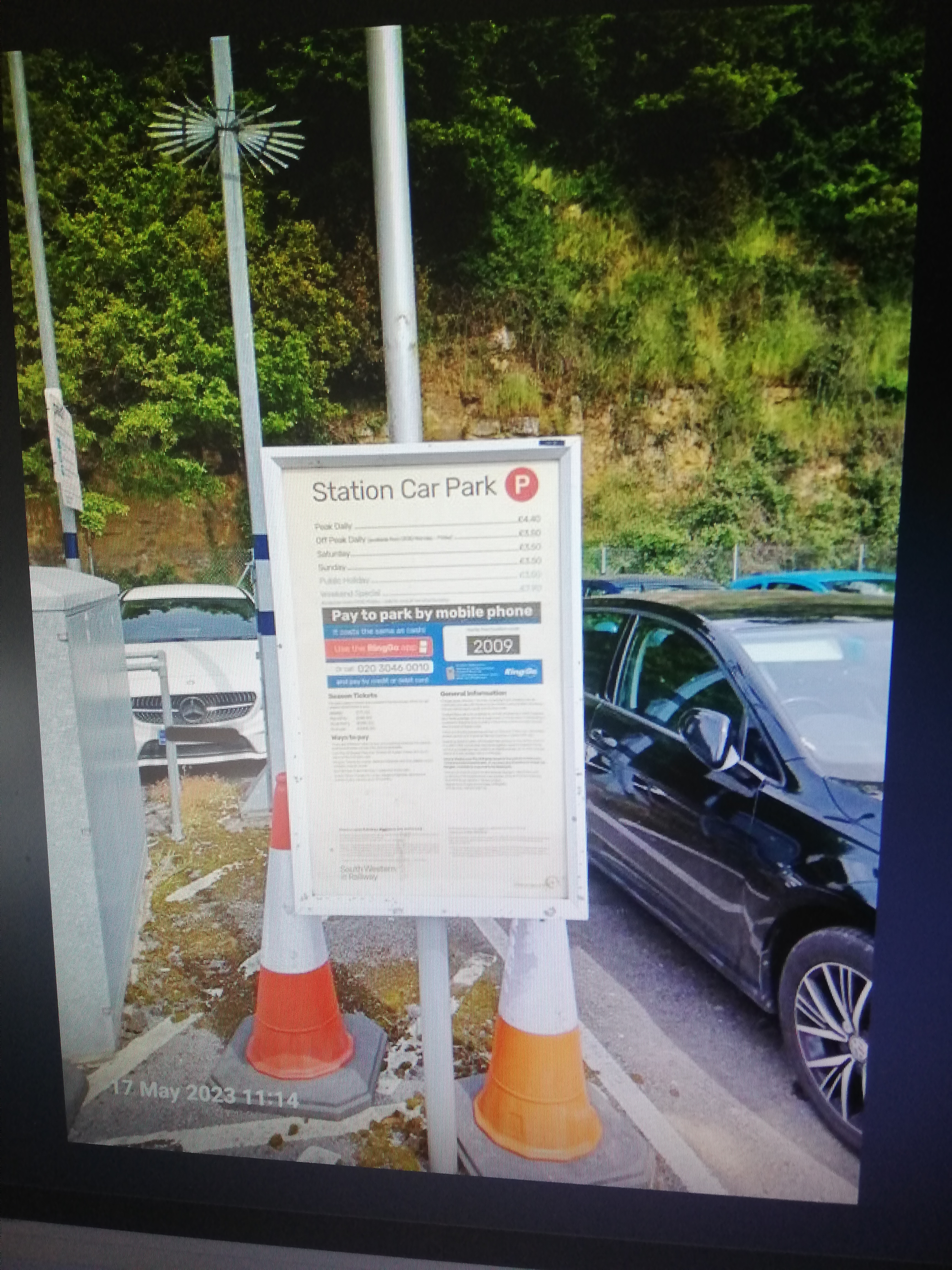 Ok I have just received these images of the car park signage at yeovil junction - it is difficult to see the context of these in terms of their visibility but it does strike me that they are not particularly large! Will post below