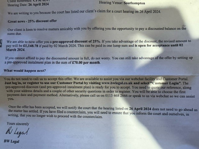 I acknowledge receipt of your recent communication regarding the ongoing proceedings involving Countrywide Parking at Southampton Court. Allow me to express my profound dismay at the inadequate and frankly laughable content of your 'Great news' letter.