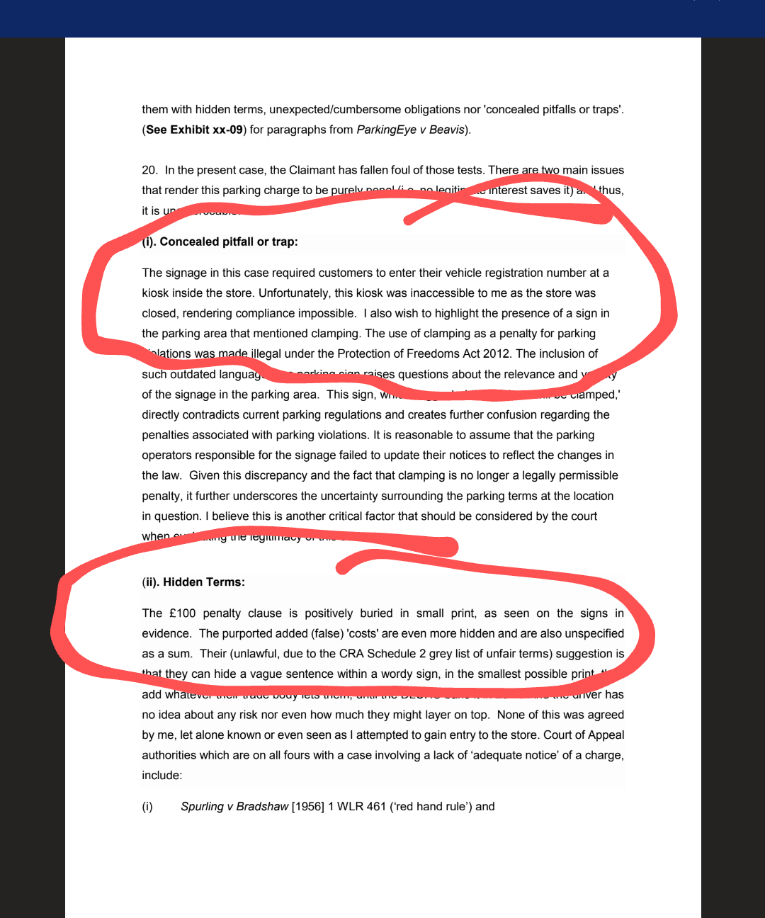SO Should I still keep the para regarding the signage, although my main point of argue is not the signage ? but the AST and primacy of contract and no mention regarding parking schemes also the fact it was introduced after 2 years. ?