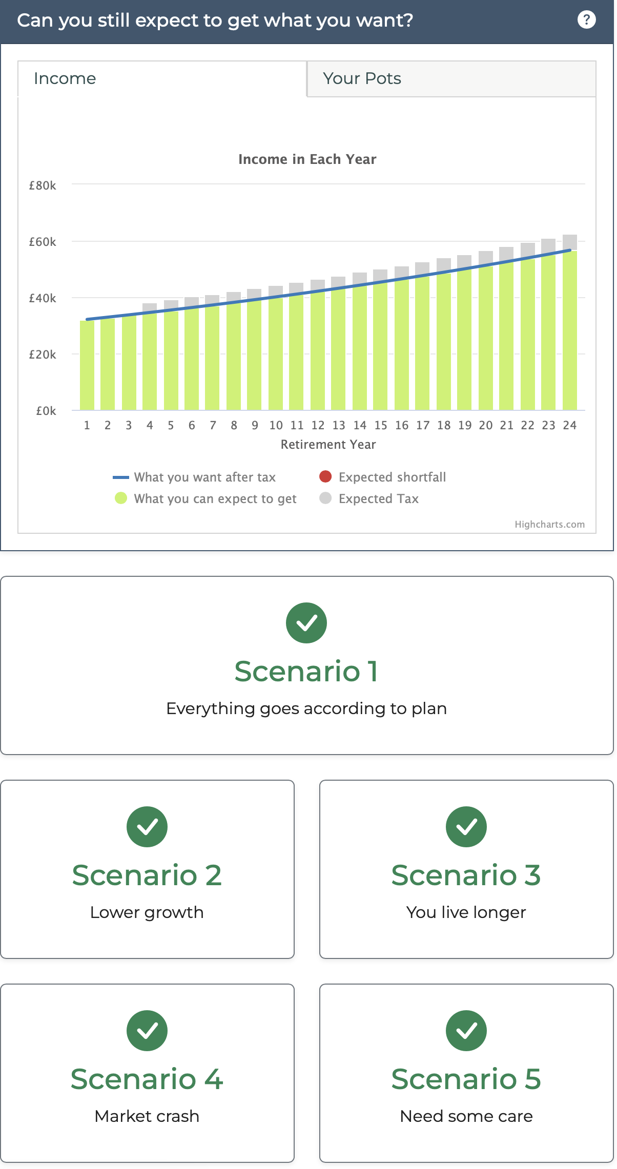 I think that’s Guiide pension planner which runs multiple scenarios. I thought that it’s good, maybe not as sophisticated as something an ifa might use, but useful. https://try.guiide.co.uk/simple/?gclid=Cj0KCQjwuZGnBhD1ARIsACxbAVgtQ4gfPCxq5IpgebNvHk588y9eWaOyM75AU0HxT9snQ70eWAAw9fwaAgRoEALw_wcBmichaels said: