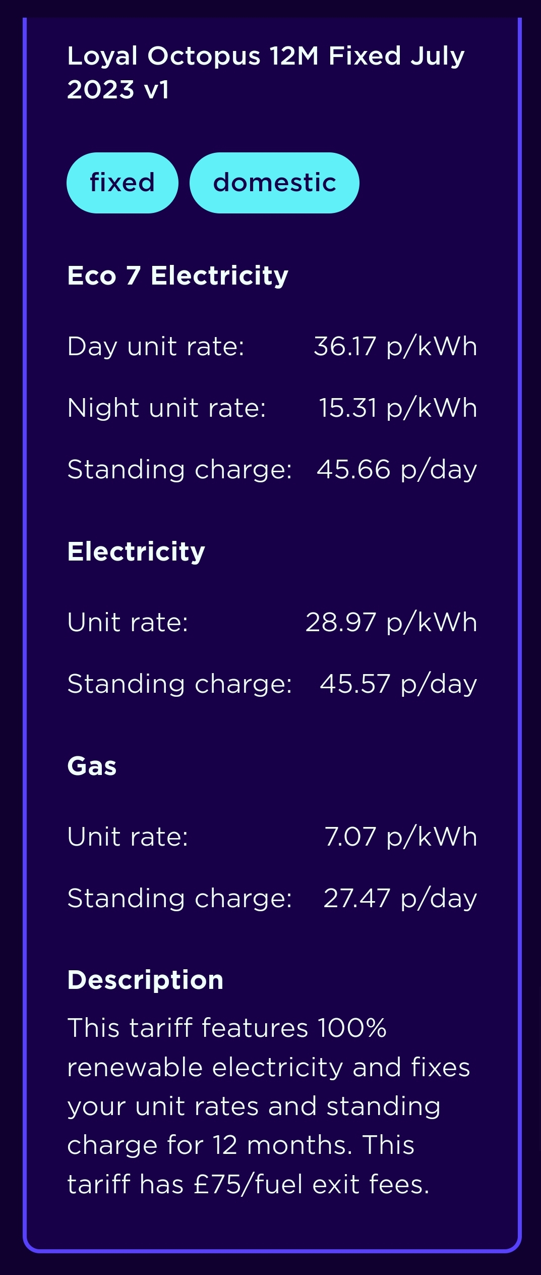 What I don't get is why these fixed deals just offer a single rate rather than a day rate and a night rate? Surely they want us to push our usage to the night if we can? I'm sure it makes sense to Octopus but it doesn't work for me given I have solar panels and batteries installed now!0