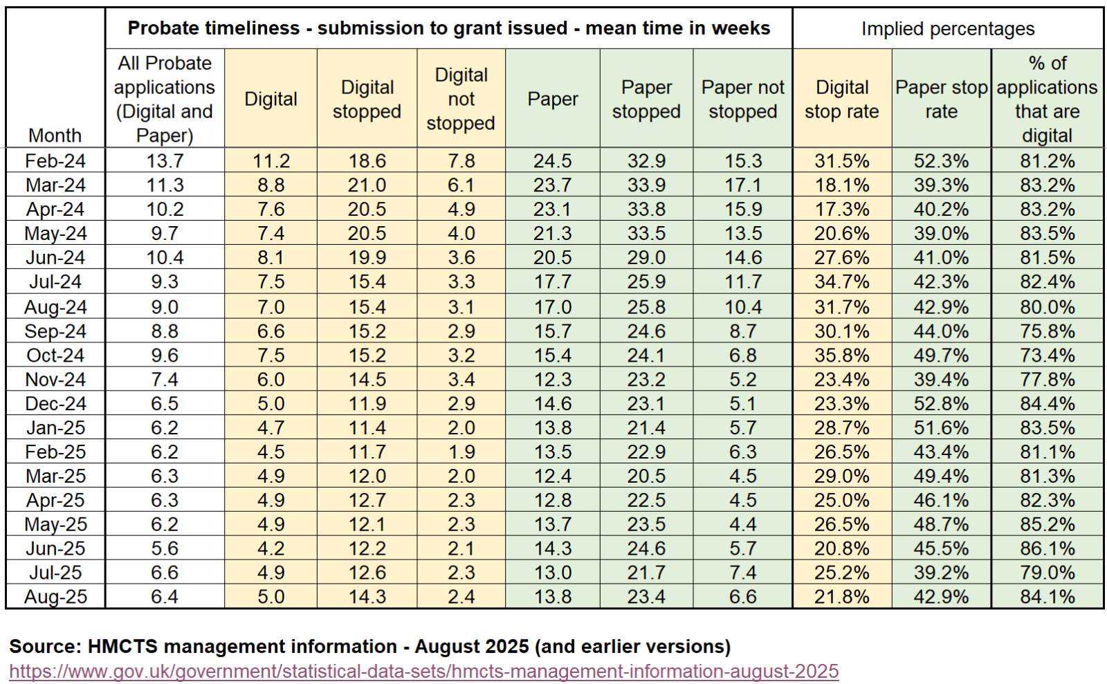Here are the HMCTS August probate wait times. The table has been created by me from the data. The monthly update data is published on the second Thursday of each month, so the next update will be the September data which comes out in November.Overall (digital and paper combined) there were 23,314 applications received in August and 23,547 grants issued (so slightly more issued than received). The overall average wait time is down at 6.4 weeks.But the overall average wait time for paper cases is up at 13.8 weeks; there were 4,285 paper applications received in August which was more than the 3,828 grants issued.Variations between consecutive months can be as a result of differences in which cases HMCTS have been working on. Note these are mean (average) figures and there can be considerable variation from the mean in individual cases even within categories. For example the mean time for digital stopped applications is currently 14.3 weeks but the time for an individual digital stopped case may vary considerably from this figure.I came, I saw, I melted2