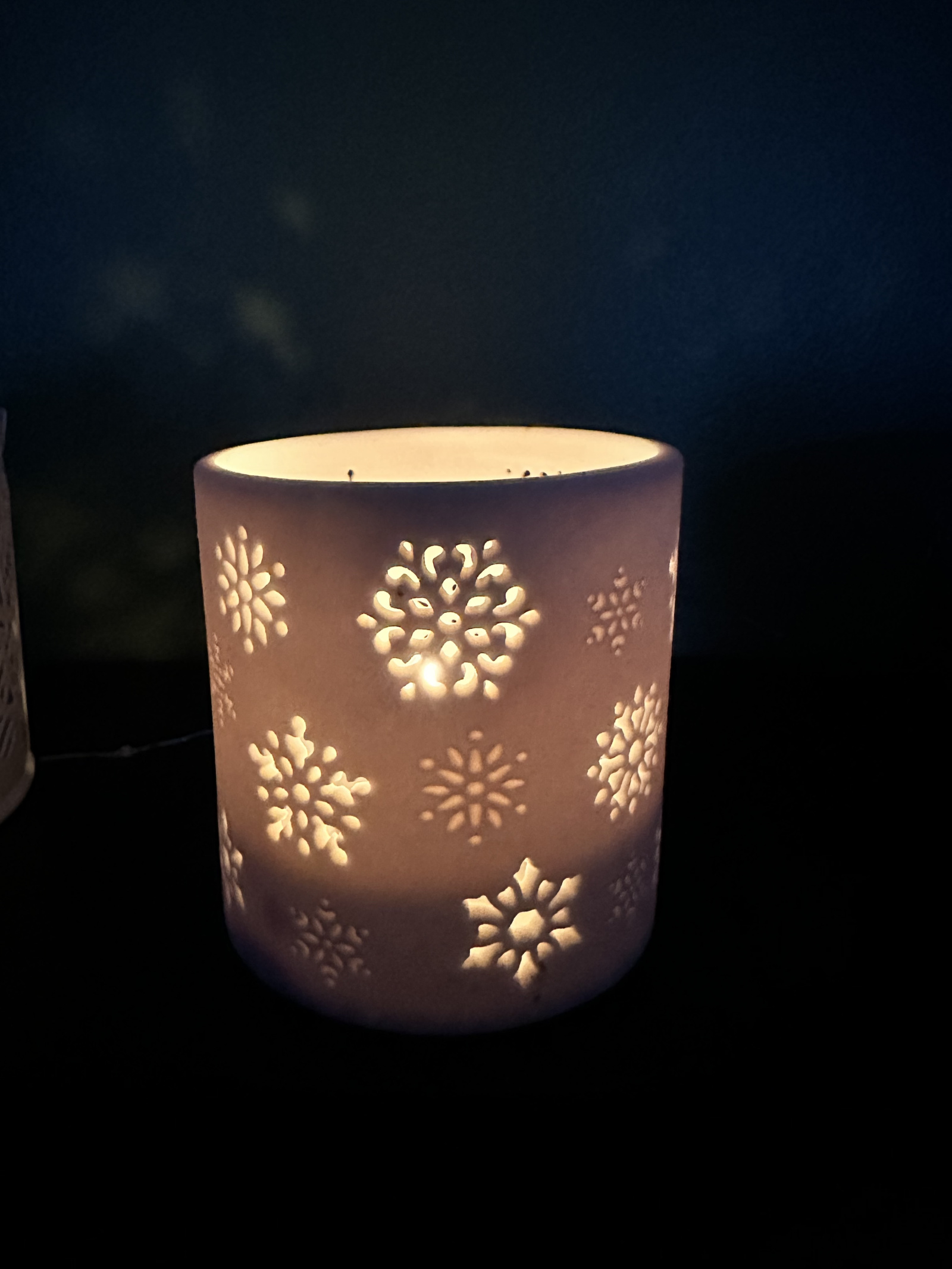 - the last of the 5p Christmas sprouts were shredded and cooked off with some finely chopped bacon and the second half of the pack of chestnuts from Christmas Day - some eaten yesterday with the balance giving two more portions in the freezer.- we’ve managed to a load of washing each night over the weekend using the cheapest of the electricity and combining either using the dehumidifier to ensure stuff dried reasonably fast.We did get the planned pile of stuff to the charity shop - and inevitably came out again having found some books to buy! That included two Lee Childs we didn’t already have, so they weren’t getting left behind! The star of the show for our purchases this trip though was the most gorgeous little tea-light holder - only 50p, look!