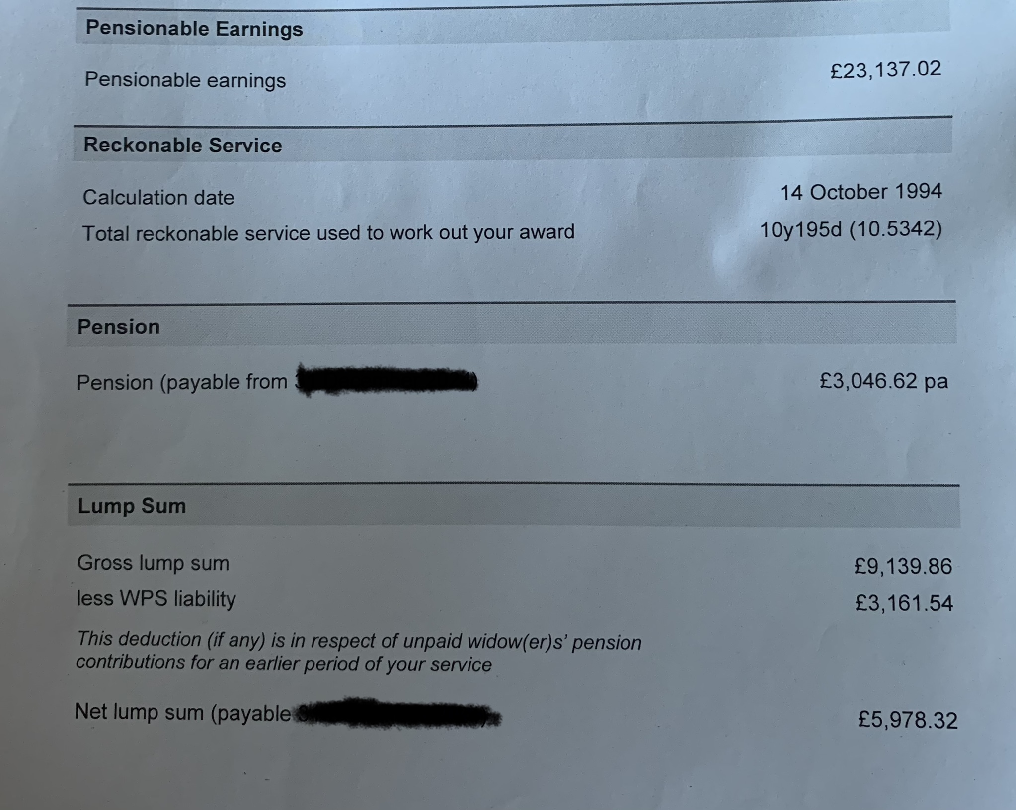 Thanks! I’ll look up how to request the statement and ask for one. The pension is due to pay in under 18 months.hugheskevi said:So it looks like the pension at date-of-leaving in 1994 was £3,046 and lump sum of £9,140.