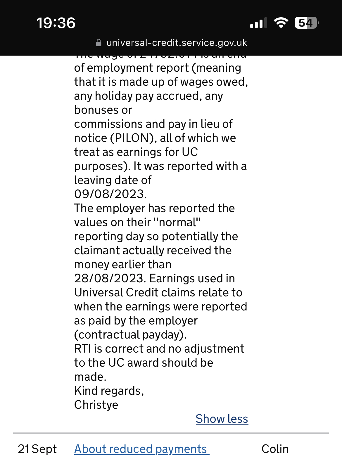 Universal credit have responded with the attached - surely they can’t leave us a whole month with nothing but saying he may of been paid early but it’s is reported as a contractual payday ? I’m really stressed, worried and anxious about how I’m going to get through the next month0 -