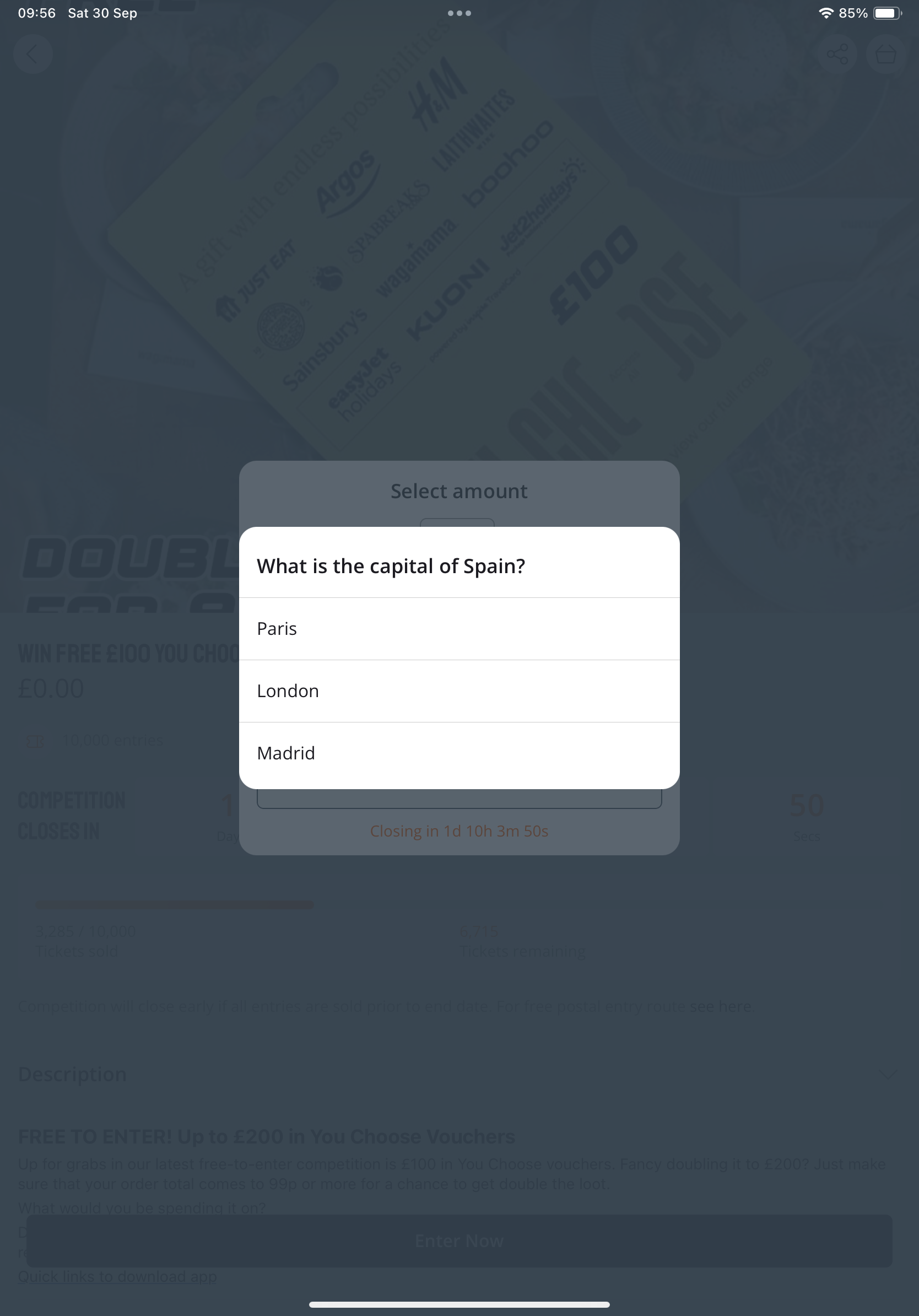 E: 01/10 8pm Win FREE £100 You Choose Voucher (Doubled over 99p spend) - App Exclusive