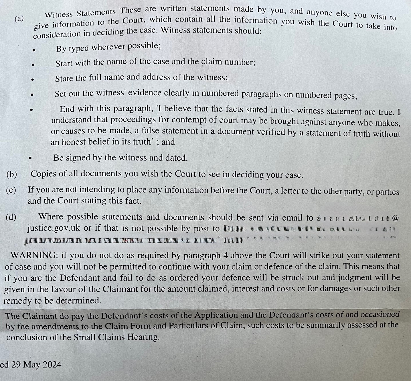 I have until 19th June to serve an amended Defence and 3rd July to provide a 'new' WS (and supporting docs).