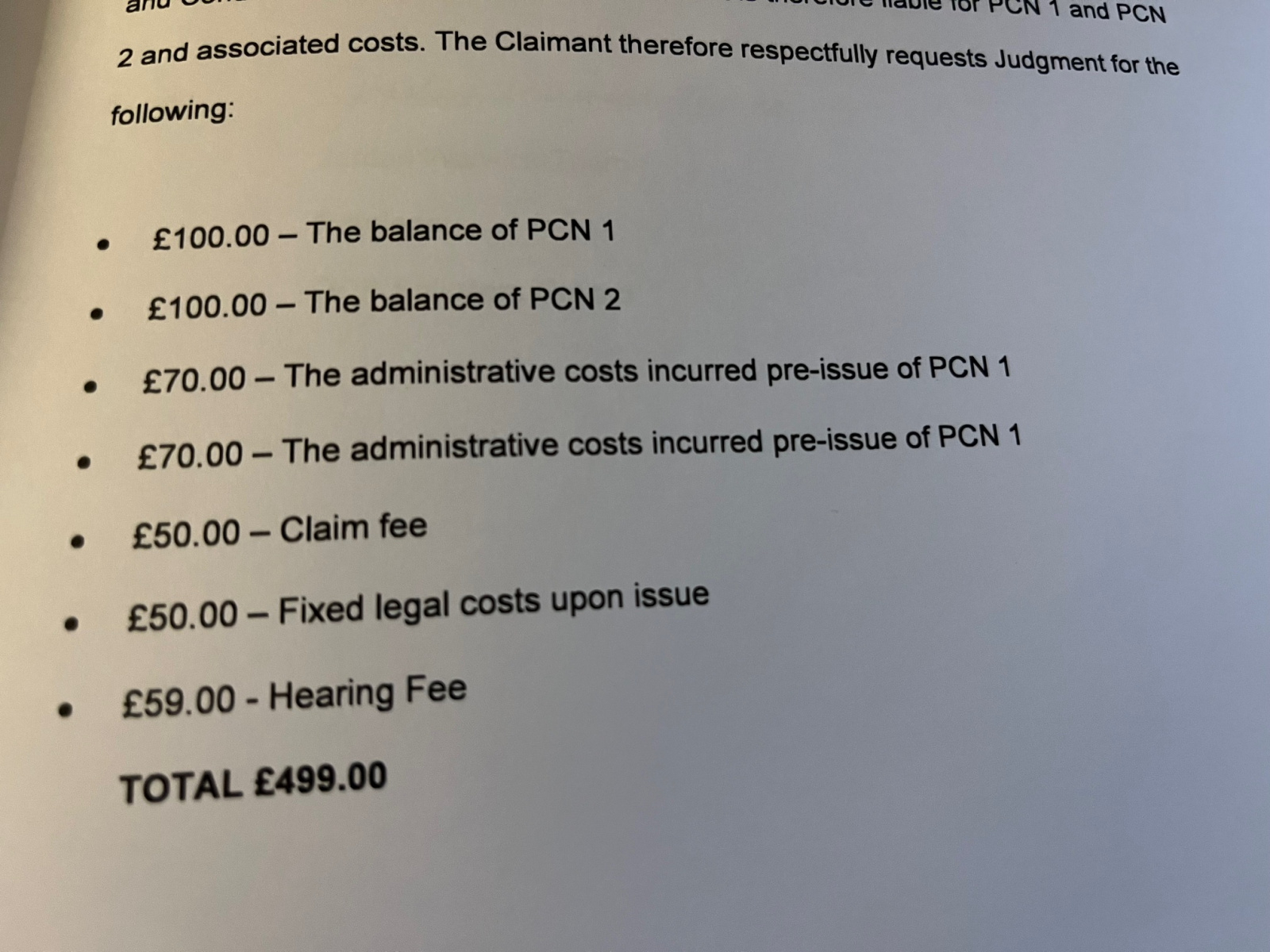 Also they say 'As both PCN 1 and PCN 2 remained unpaid the Claimant had no alternative but to issue Court proceedings to recover the outstanding PCNs. The Claimant incurred administrative costs, which resulted in the outstanding balance increasing.' Is that bad grammar or are they saying admin costs were incurred after court proceedings were initiated? Meaning their £70 isn't pre-PCN.