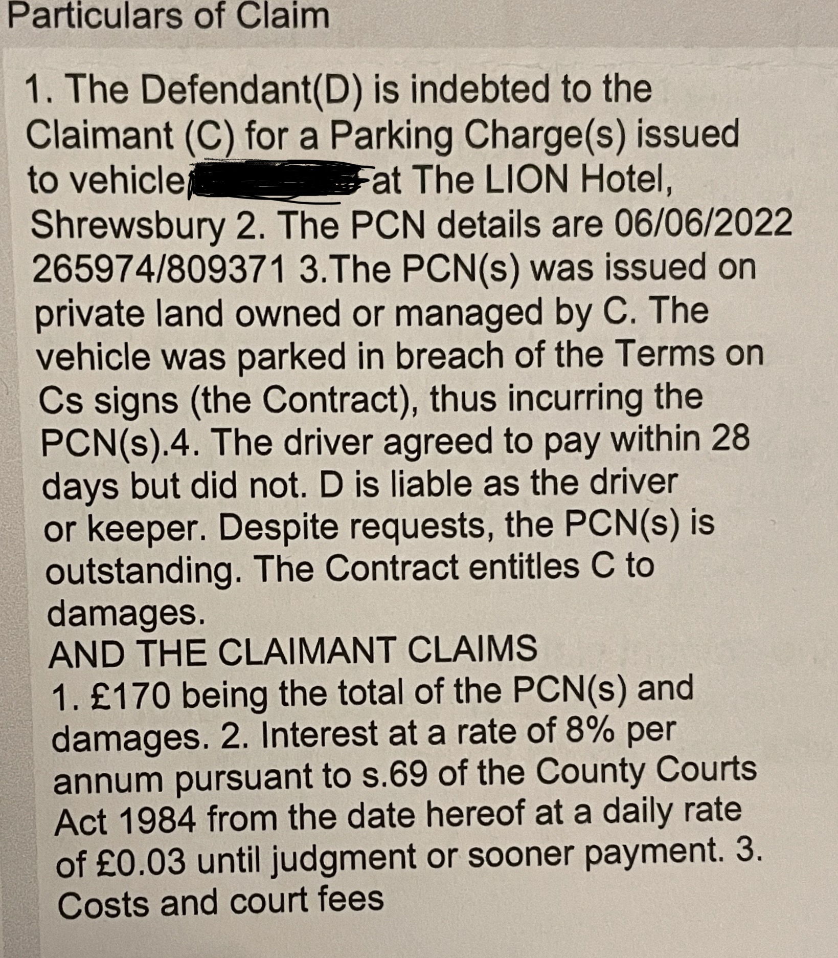 DefenceI paid for this parking on arrival at The Lion Hotel on 05/06/22 at 18:37:48 for the 3 days/nights I was staying at the hotel. I went to reception and asked the gentleman on the desk if I could pay for my entire stay and payment was taken. I was very shocked to received the claim from Parking Eye. On looking at the hotels comments section I discovered that this has happened to a lot of the guests. I wrote to the company on receipt of their letter and sent a copy of the receipt and a copy of the payment on my bank statement to them and didn’t hear anything so assumed they realised their mistake. I was even more shocked and annoyed when Igot a letter from DCB ltd in May this year claiming I owed them money. I emailed them saying I had already paid for parking however they responded saying the timeframe to appeal had expired, even though I had appealed as soon as they issued their alleged claim. I have copies of the receipt and my bank statement I can provide as proof of payment.