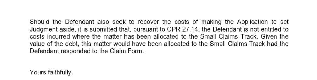 But thus hearing is about setting aside the CCJ because you clearly defended the case and a house move caused you to muss a step.