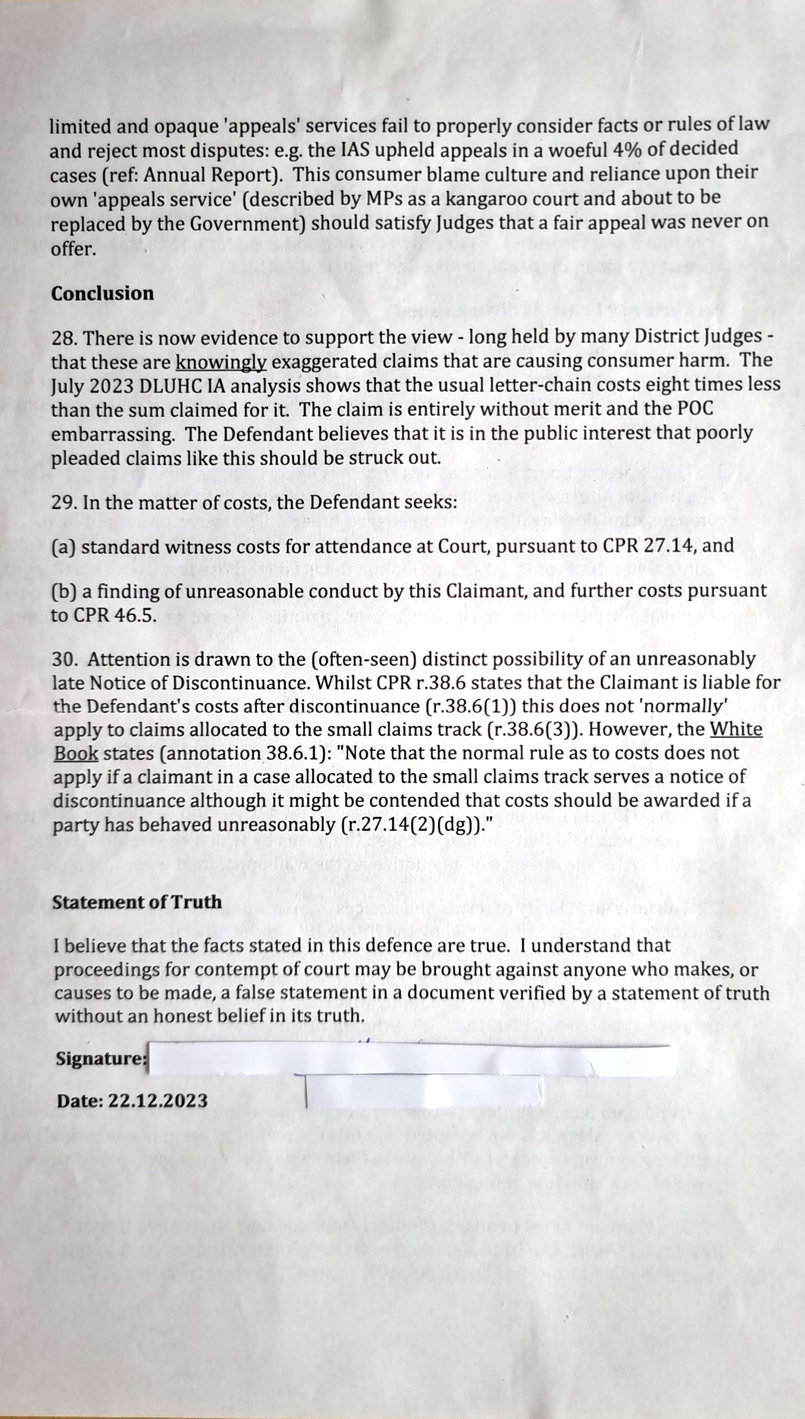 Also, if the judge looks to be not really with you (because the above situation isn't the Claimant's fault) you could throw in Mazur v Speechlys (search the forum!) because any DCB Legal claim form from 2023 was probably signed by a non-solicitor which is improper.