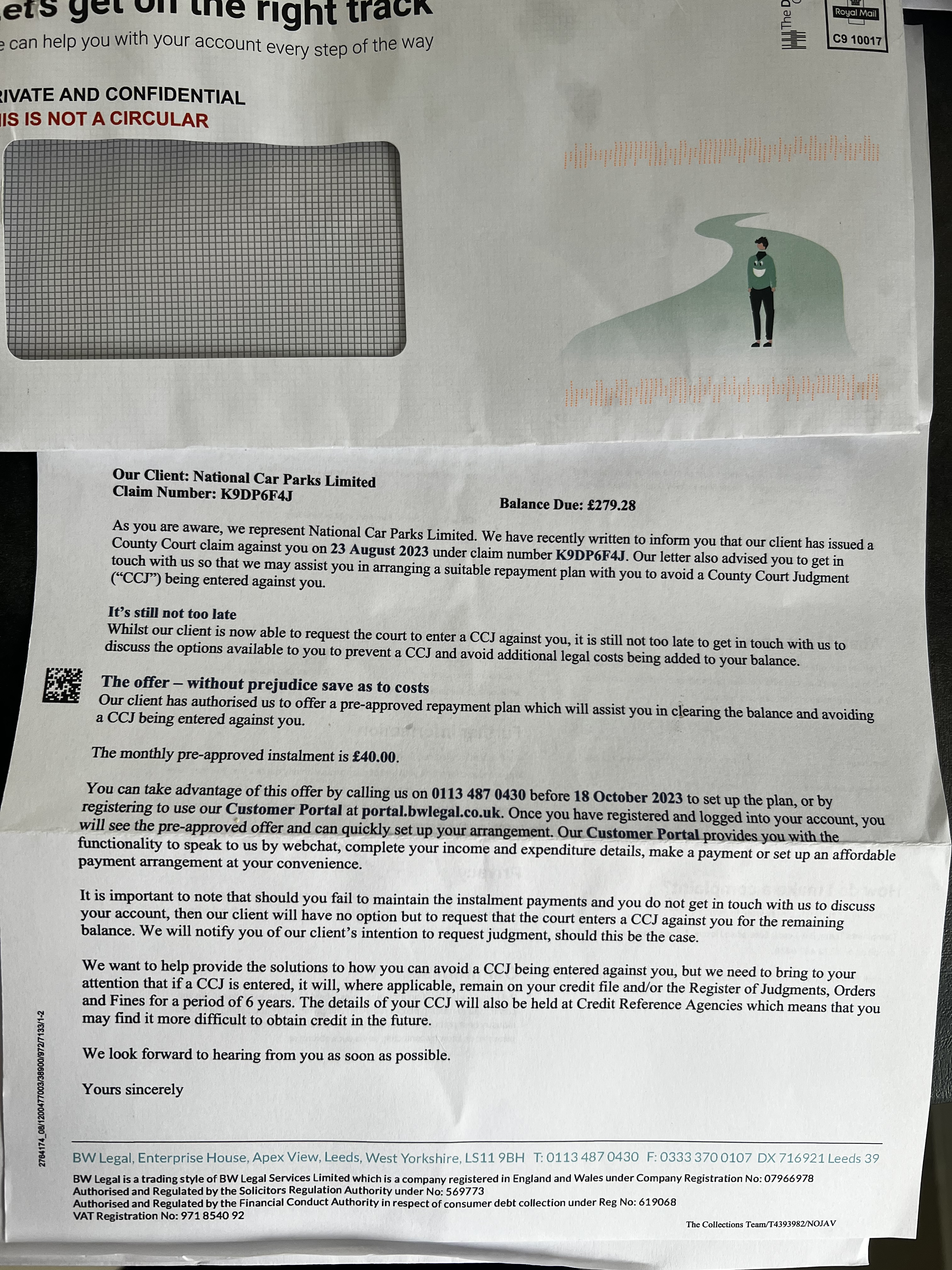 Did BWLegal actually say ... pay and you won't get a CCJ ?? Would love to see such a letterLauraham61 said:Bw legals recent letter (this week) is offering for me to pay it and I won’t receive a CCJ. So should I pay? Or is it too late?