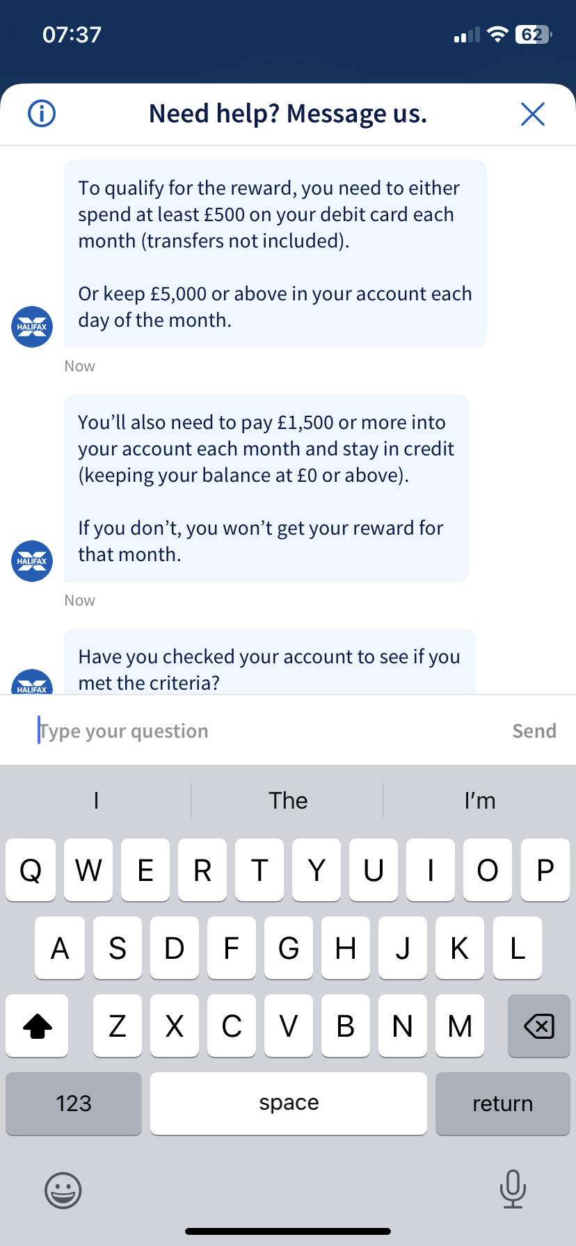 I’ve just had a look on the chat as I realised I haven’t had the reward for a while, however as per the criteria, I spend on my credit card then pay off the balance so I don’t spend £500 a month on my debit card