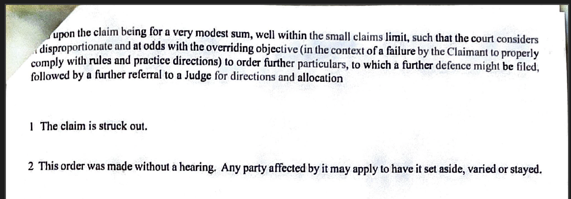 Nice one, struck out due to the woeful POC and non compliance with the CPRs etc