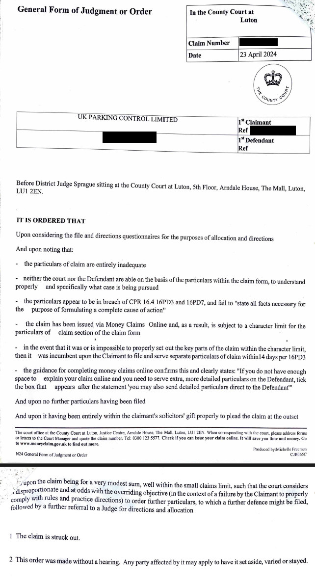 These generic roboclaims churn through the system, clogging up court time over meritless rip-off PCNs where the POC are boilerplate and lack even the most basic details of the alleged breach (please show your own Claim Form as evidence) and attach CEL v Chan and say parking claim bulk litigators should be banned from the county court system as vexatious litigants.