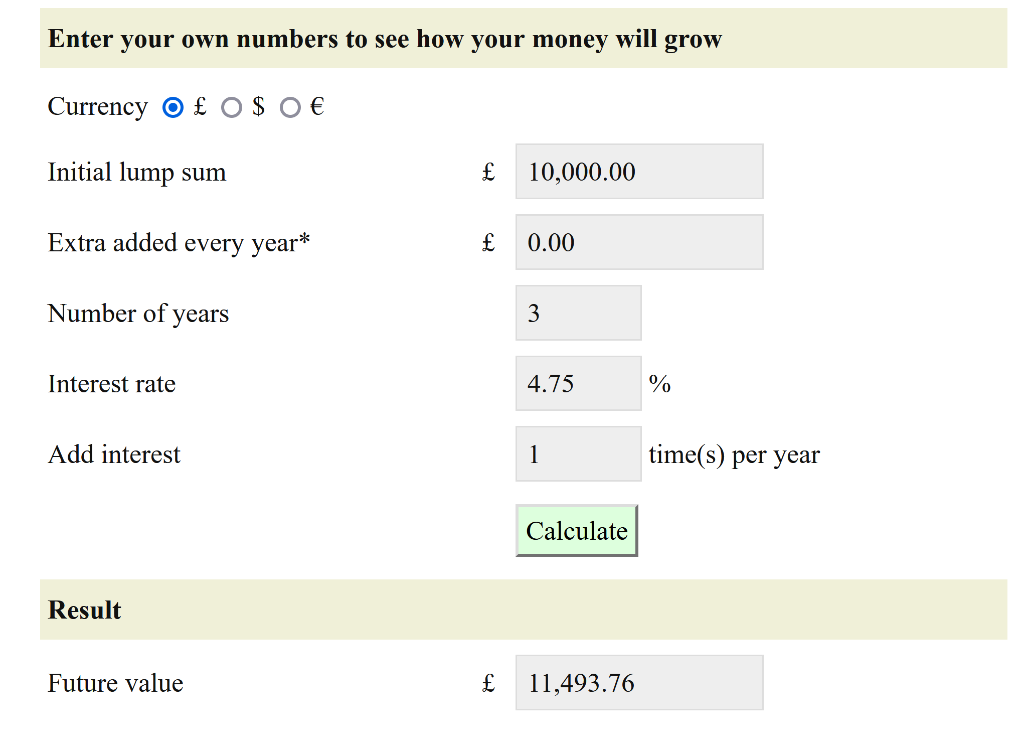 If say I had 10000 in it I assume I would get £475 interest the first year.