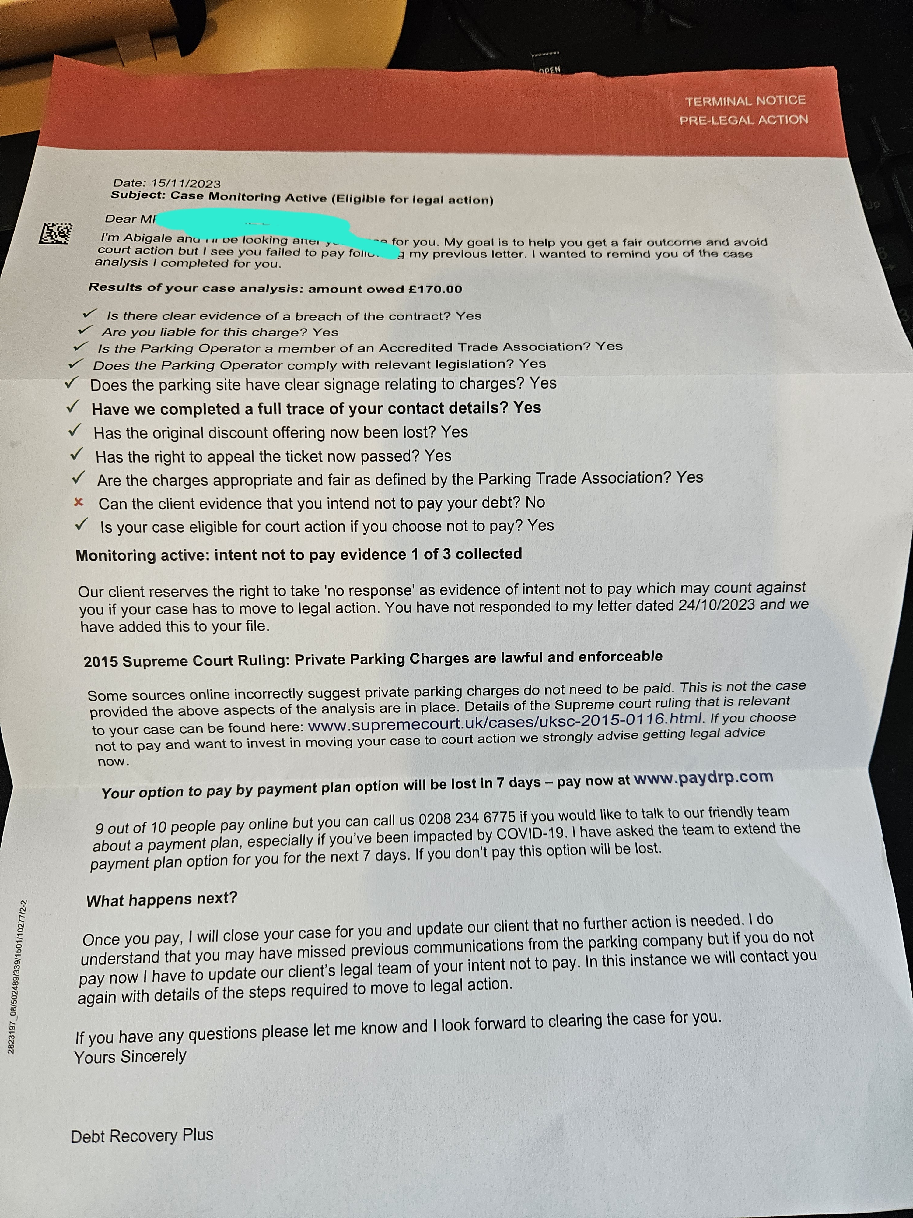 Obviously ignore this trash.PRIVATE 'PCN'? DON'T PAY BUT DON'T IGNORE IT (except N.Ireland).