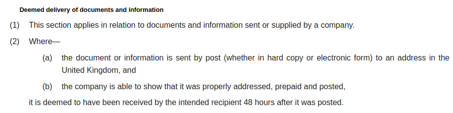 If companies were unable to rely on such legislation, they would be unable to consider standard postal services to be an appropriate method of delivery of time sensitive documents, including such practices as sending items a day or two apart to ensure they are not received simultaneously.3 -