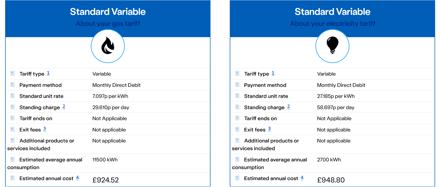 Why do energy tariff details seem incorrect !