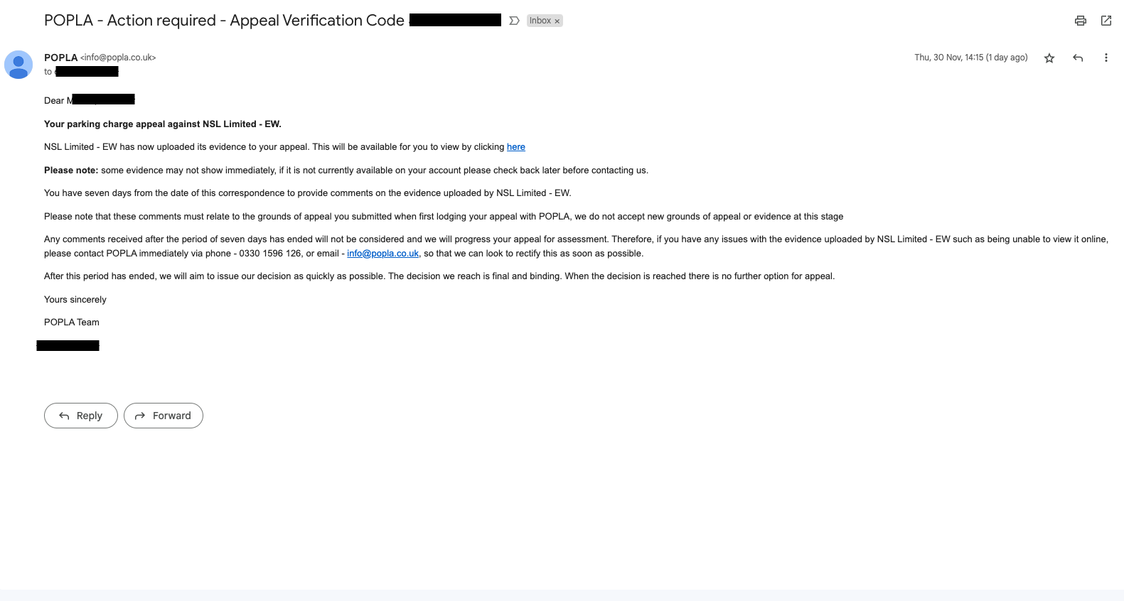 I also received this email from POPLA which shows same evidences plus hire agreement from NSL (DO I Need to reply?):