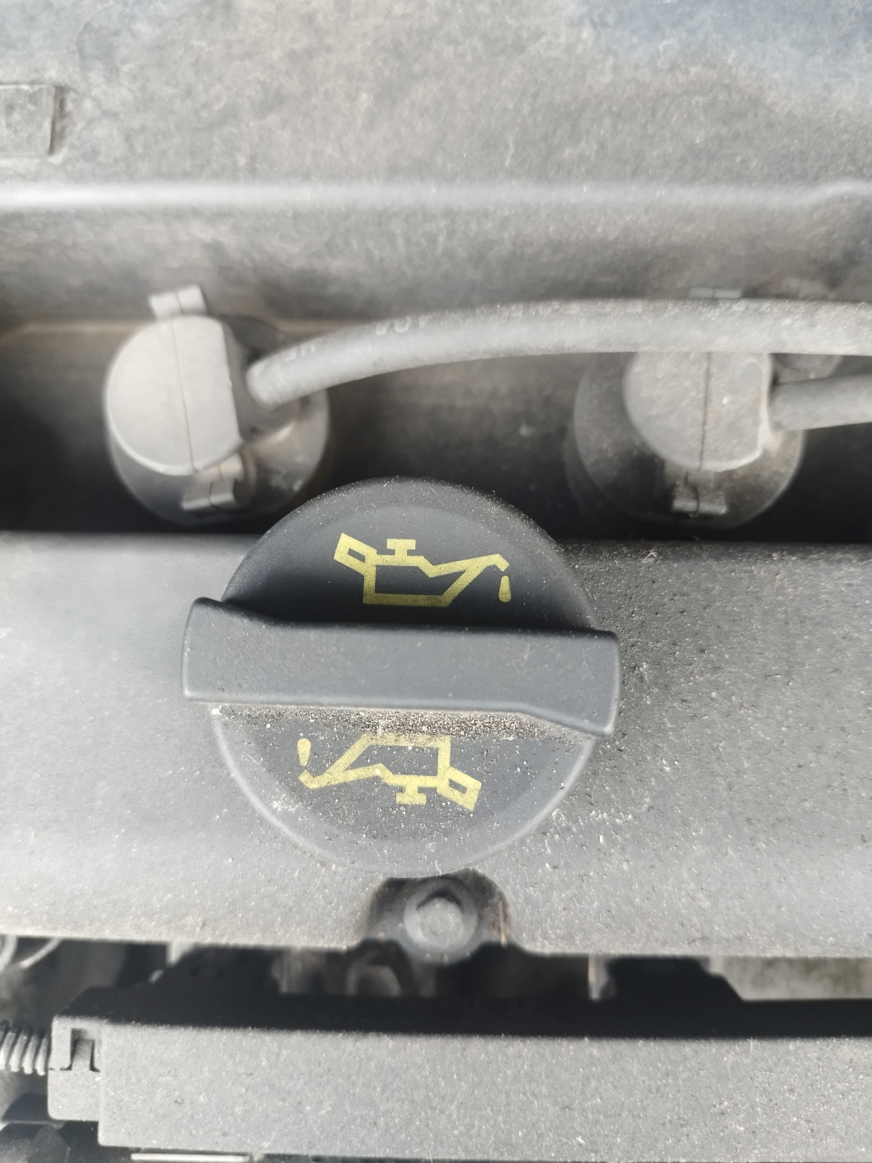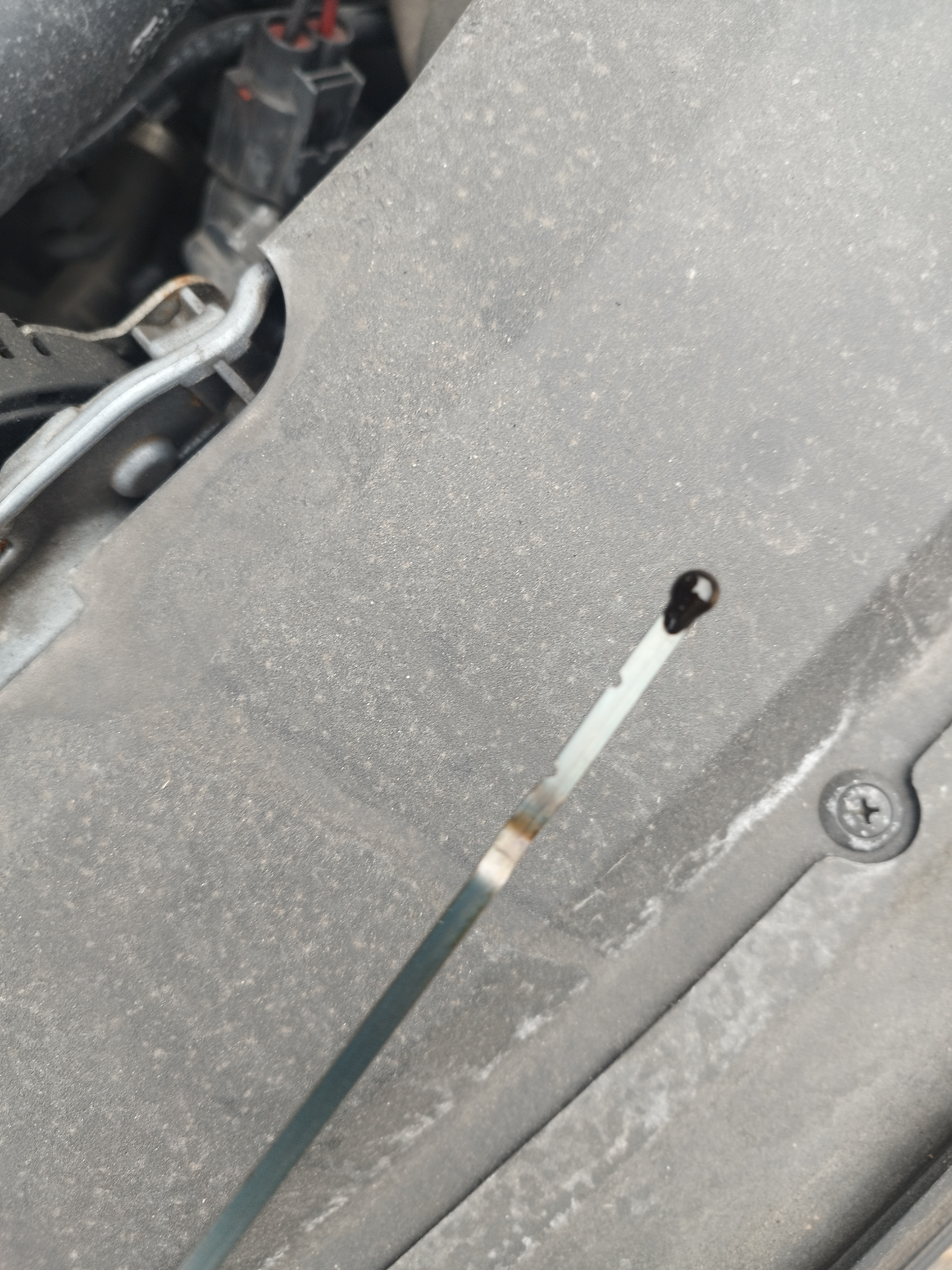 Also, assuming the yellow pull thing definitely is the oil level thing, it appears to be empty or at least lower then the min as the thing comes out clean. I assume the oil cap is the oil bottle thing with oil dripping out? Do I pour oil in until I can see it on the yellow thing?