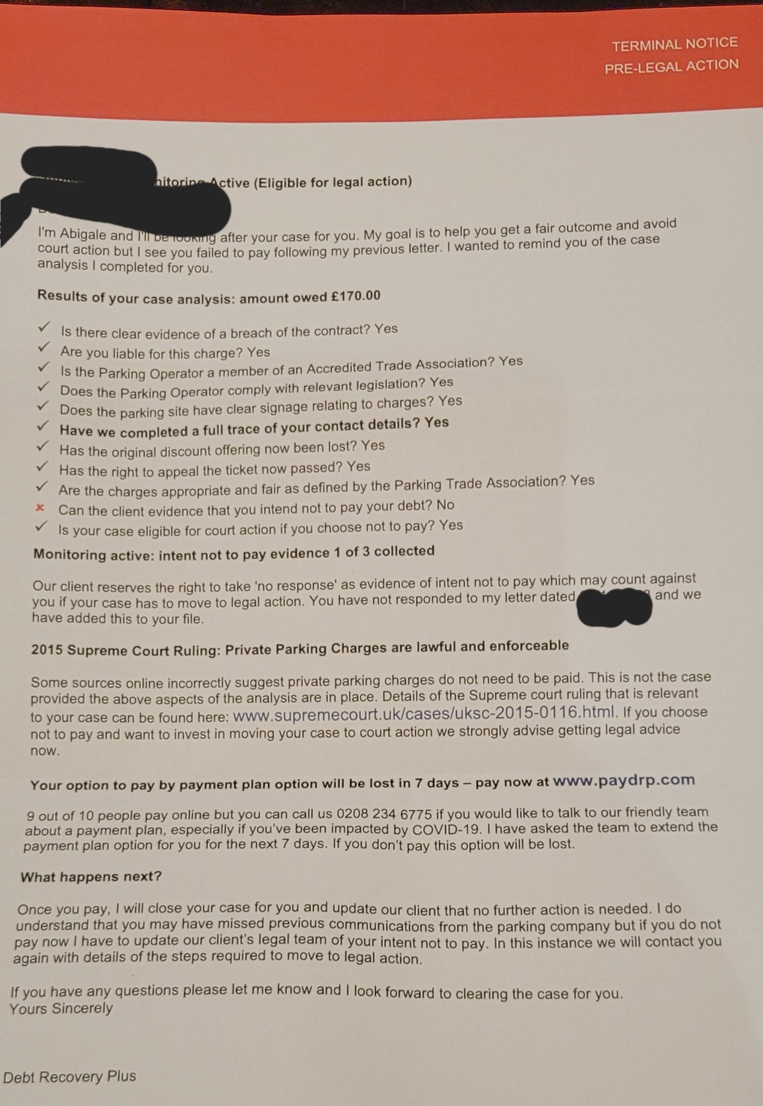 Search the forum for Abigale (the obvious keyword to find that letter laughed at to death).PRIVATE 'PCN'? DON'T PAY BUT DON'T IGNORE IT (except N.Ireland).