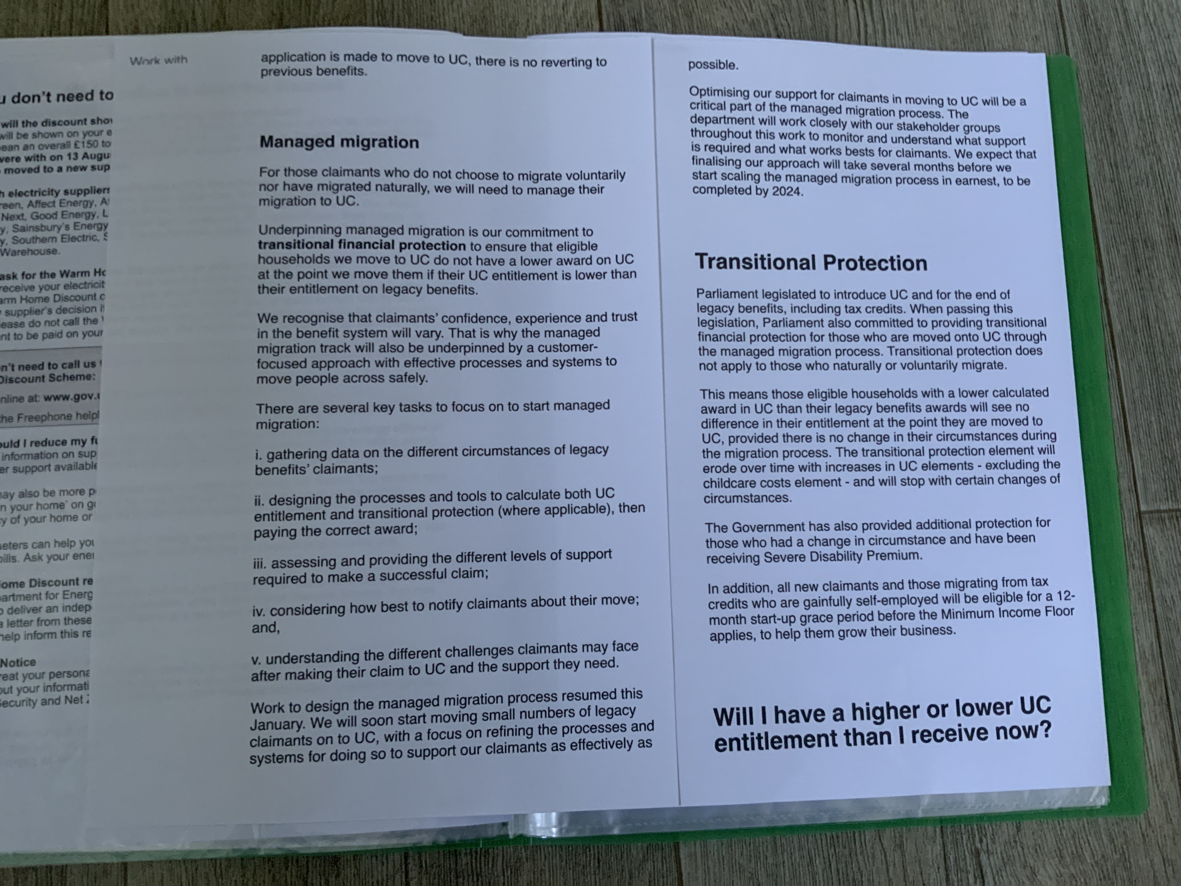 I have printed out the “Policy paper - Completing the move to Universal Credit’ updated 6 June 2022 and have its contents as another lever to use perhaps (as evidence of what was supposed to happen). Photo of relevant page.