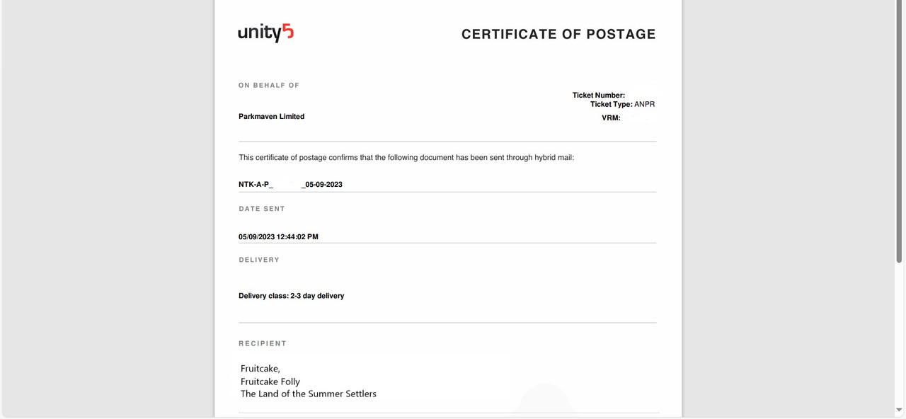 The date of issue of the non existent NTK is 05/09/23, which is the same as the alleged NTK date sent on the certificate of postage.