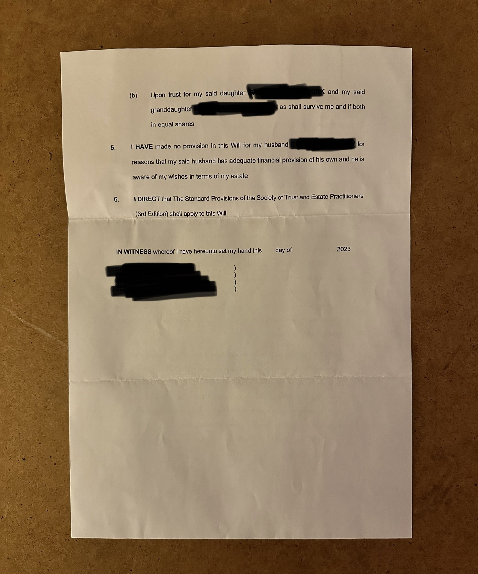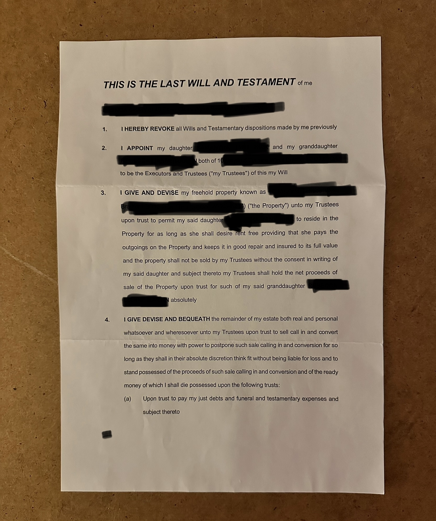 Hello, back again. My nan has had her draft will come through to read and there are some parts we are unsure of. I just wondered if anyone could explain/simplify what is written as my Nan is stressed out that what is written isn’t correct and she can’t get an appointment with the solicitor to go through it until next year and she wants it all complete and signed asap so it’s done. TIA0