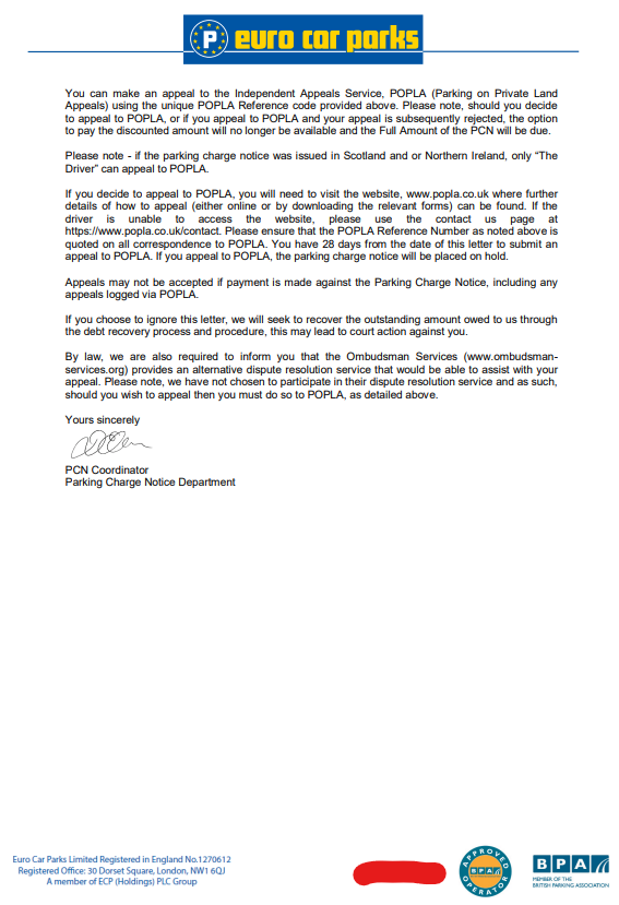 It's too late now, but if you ever get another PCN from an unregulated private parking company, use the ready written appeal template in blue text that doesn't give away the driver's identity.