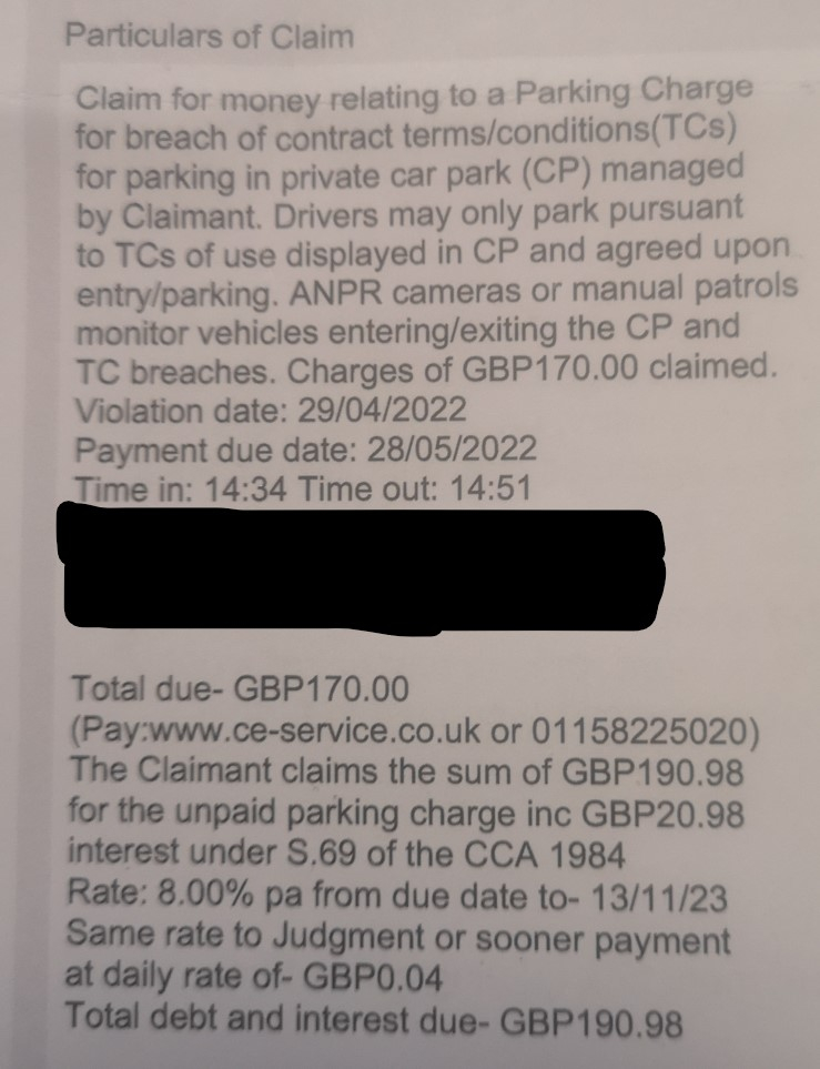 Afternoon, I sent my AOS in for the claim in plenty of time. I now want to get the defence done, I've set myself a deadline of this Friday (4th) so that it's done in plenty of time. I'm using the very useful defence template but will likely have a few questions as I complete it. First up, I've attached a copy of the claim details (suitably redacted). I was wondering whether the claim set out is suitably vague to warrant the inclusion of the request for the claim to be struck out using the the example of CE v Chan? To summarise situation I've already set out at the start of the thread, the parking was a full mis key (wrong car) in a non payment car park using a registration console in the building (medical facility)