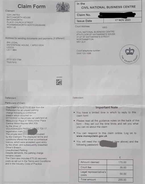 G24 parking fine, now claim form