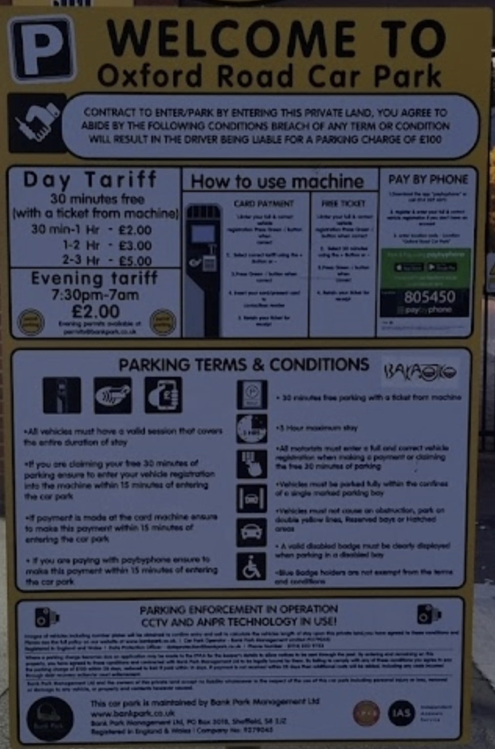 The sign is gobbledegook. Far too wordy and nothing prominent that even people staying less than 30 minutes must obtain a 'ticket'. Clearly an unfair burden and unfair, non-prominent term (per the CRA 2015).PRIVATE 'PCN'? DON'T PAY BUT DON'T IGNORE IT (except N.Ireland).