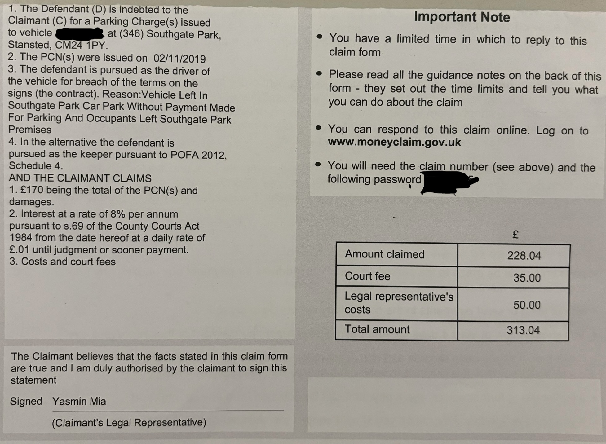 And show us the bottom half of the claim form but cover your VRM and MCOL password.PRIVATE 'PCN'? DON'T PAY BUT DON'T IGNORE IT (except N.Ireland).
