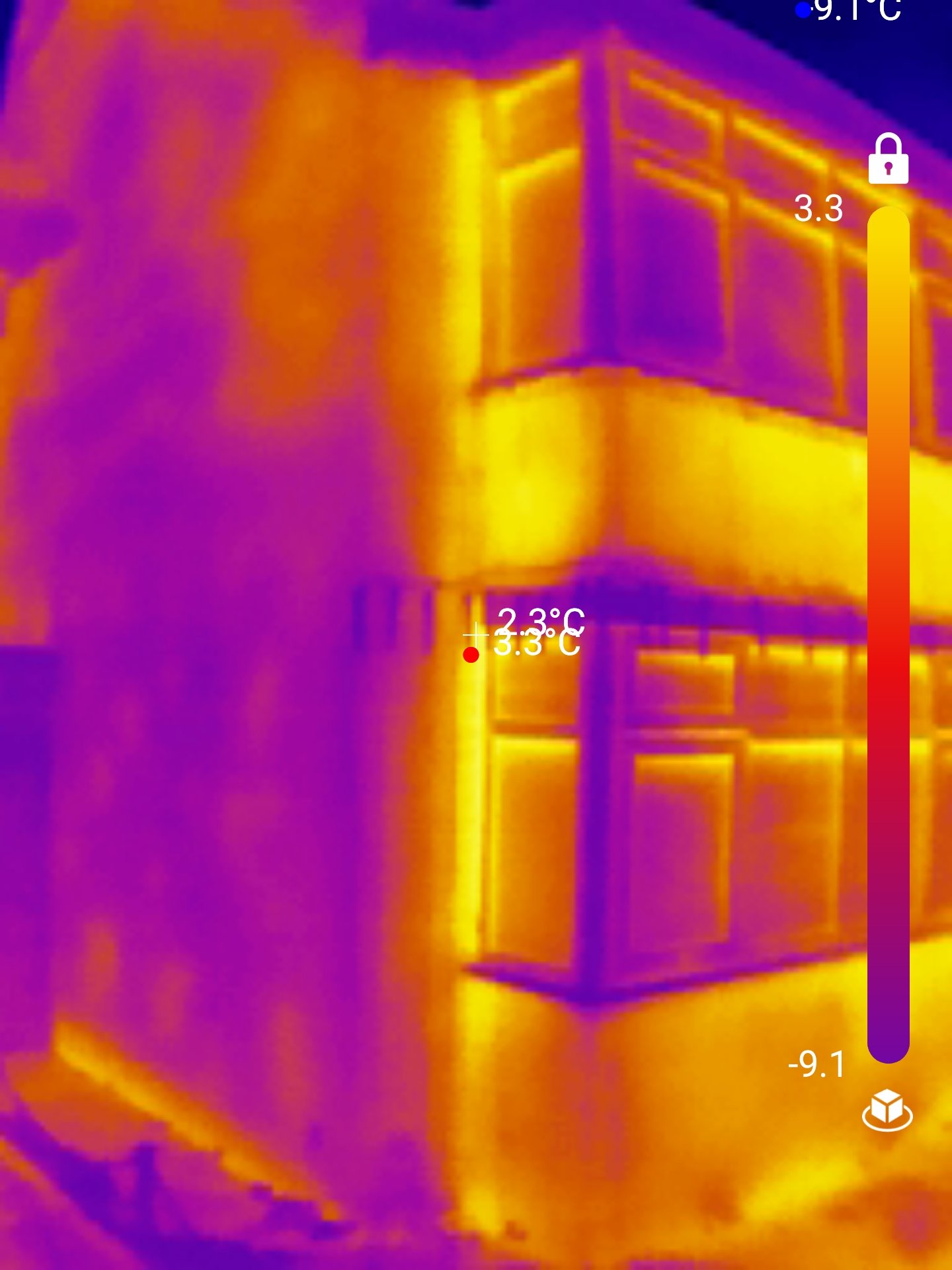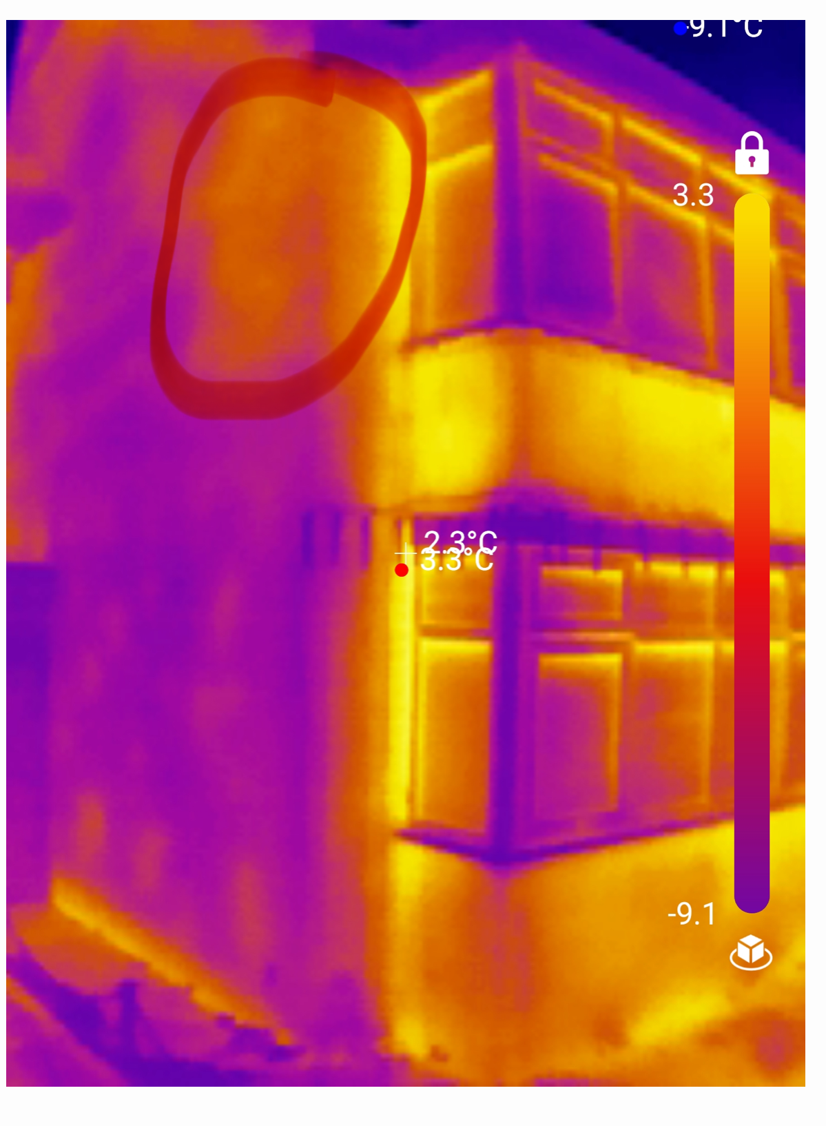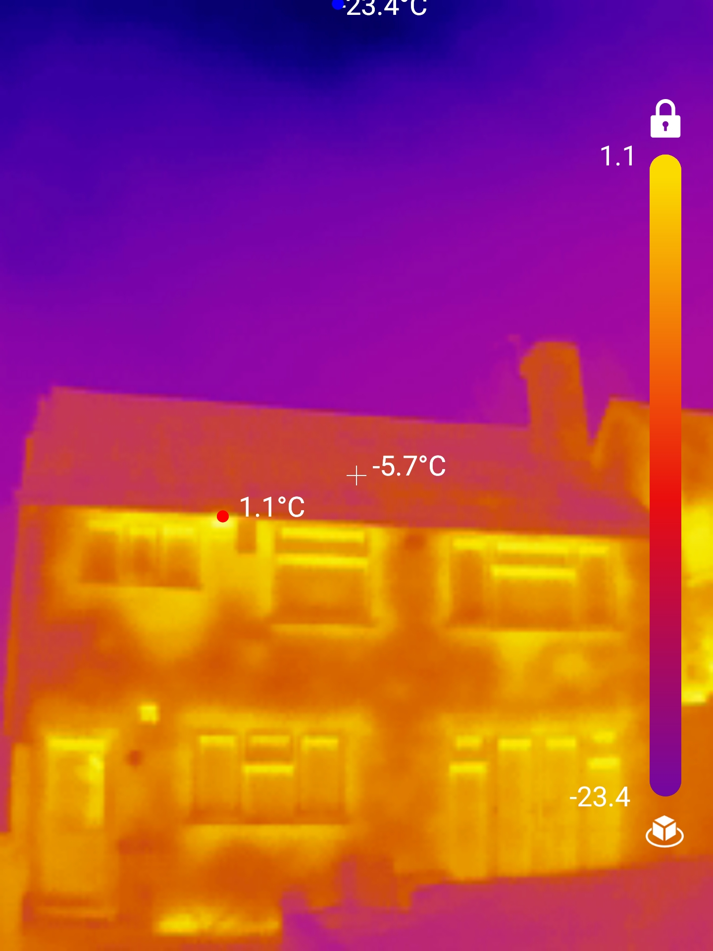 Use the camera on the brickwork outside to see where you are losing heat in the wall. Red spots will show any voids in the CWI.1