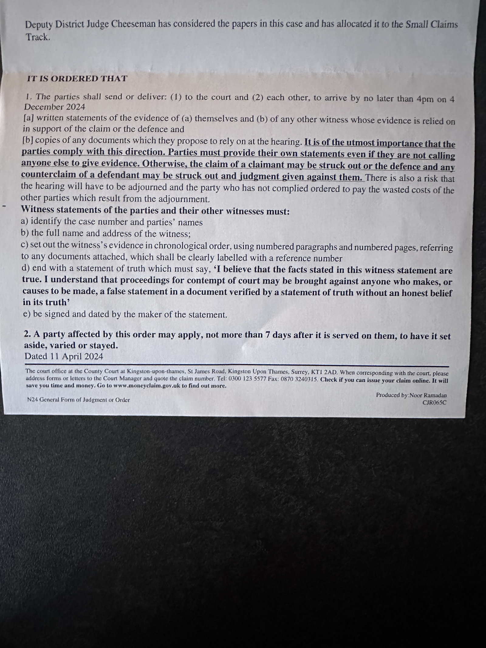 it is been be long time I have posted about case because I followed all steps and I haven't heard from the Court until last week when I received the letter from my local county court asking to submit Ws and evidence , I will be attaching letter here