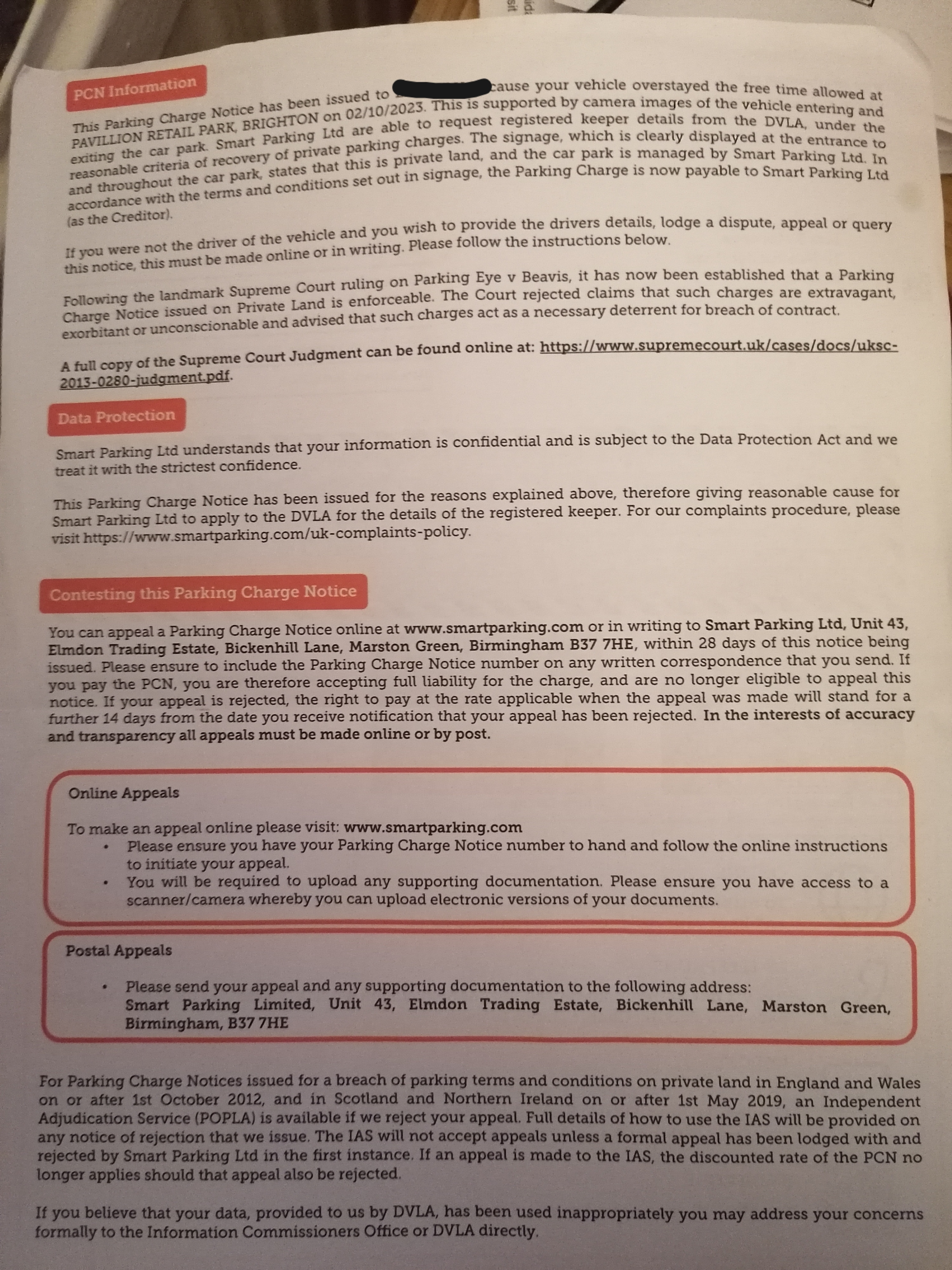 Send them the blue text initial appeal template from the NEWBIES FAQ Announcement, first post, and add this final paragraph:As your Parking Charge Notice does not comply with the requirements of the Protection of Freedoms Act 2012 (Schedule 4), you are, in law, unable to hold the registered keeper of the vehicle liable for the parking charge; I suggest therefore that you contact the driver. As there is no legal requirement placed on the registered keeper to identify the driver, I will not be doing so.Appeal online, do not tick any box stating you were the driver. Smart will cancel.Please note, we are not a legal advice forum. I personally don't get involved in critiquing court case Defences/Witness Statements, so unable to help on that front. Please don't ask. .