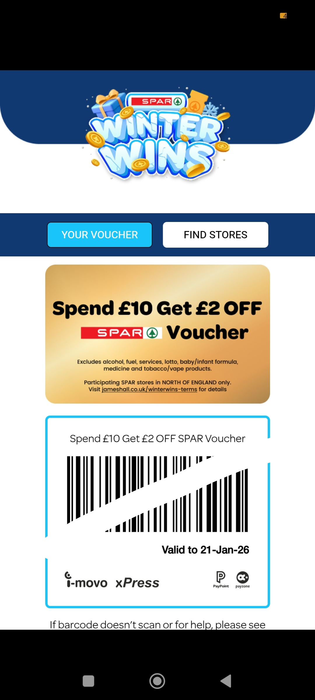 You've WON Spend £25 Get £5 OFF SPAR Voucher valid until 22-Jan: imovo.org/6421638967JW