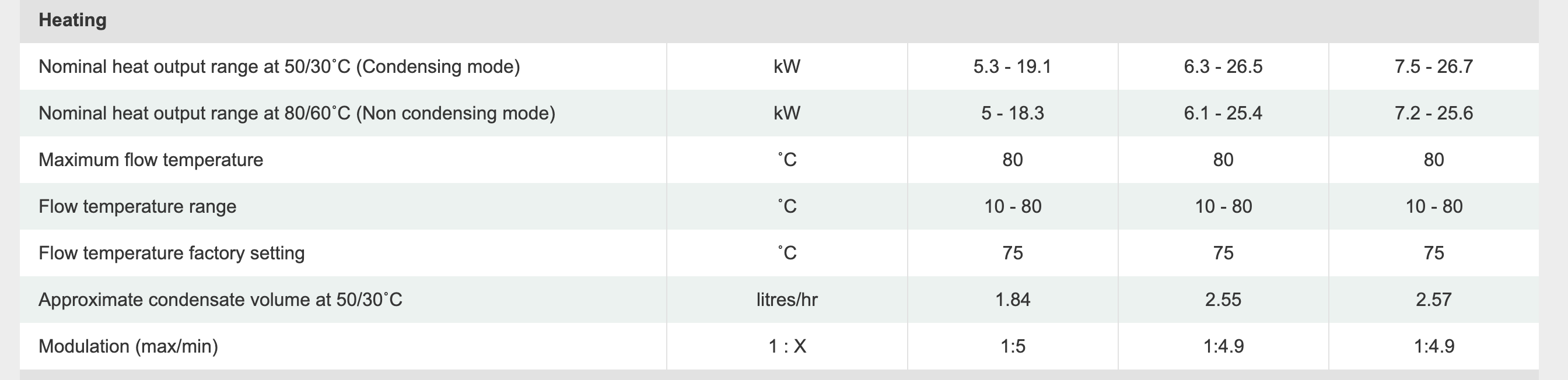 kittennose said:I just looked our (possibly new one) up, looks like it will modulate to 7.5 or 6.2 if we went for the 30kw.That range of modulation is pretty poor in my opinion. Viessmann do several that will go down to just 3.2KW - I have the Vitodens 050 which is proving to be well suited to my needs. Worcester Bosch boilers also have a similar modulation range - However, they are a litle more expensive than say RavenHeat or Baxi, but you do get a 10+ year warranty (subject to terms & conditions) unlike most of the budget boilers.And yes, my boiler does modulate down low when in use. This morning, it fired up at 40-50% for about 20 minutes before dropping down to ~12% for another hour (so start at 10-12KW and then tick over at 3.2KW). This comfortably raised the temperature of the house by 2°C and used 12KWh of gas (according to the Bright app). If the boiler wasn't capable of modulating down so low, it would probably start short cycling.