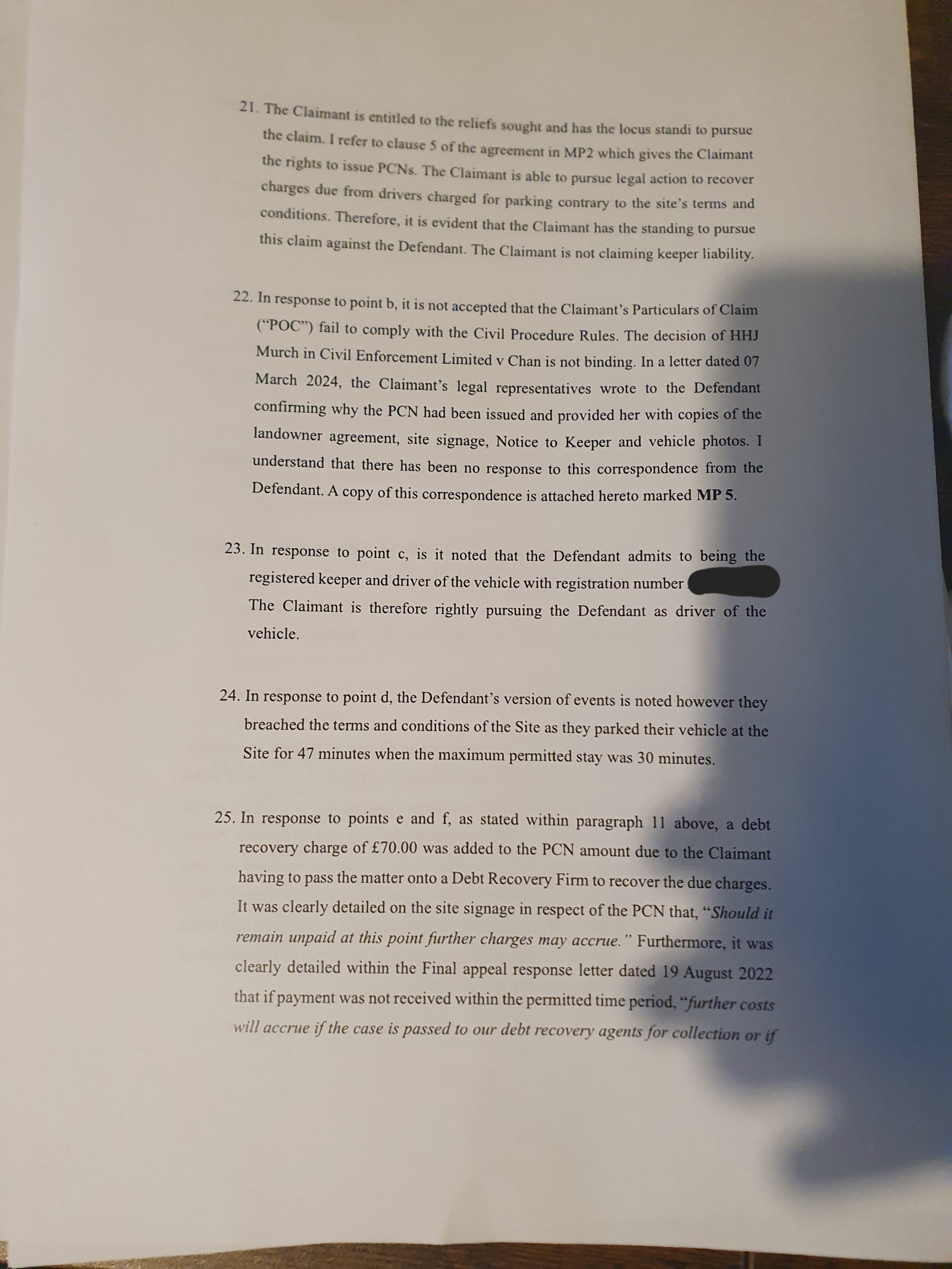 Have just received through the claimants witness statment and docs they wish to rely on court.