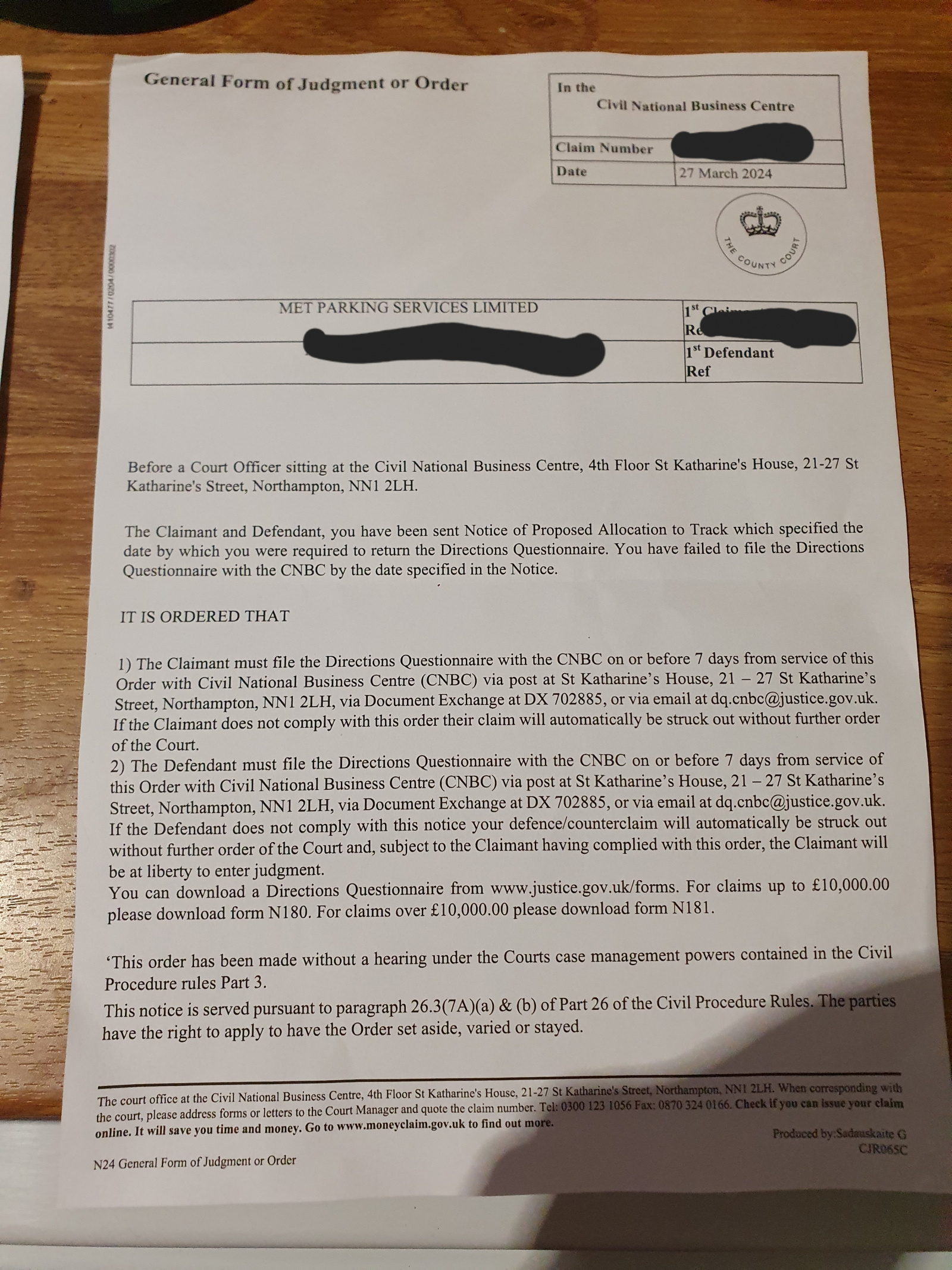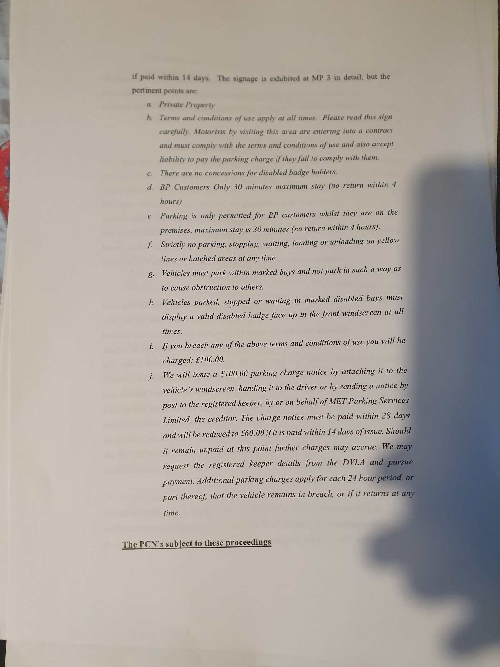 MET PARKING will need to prove to the judge they paid the amount and to whom