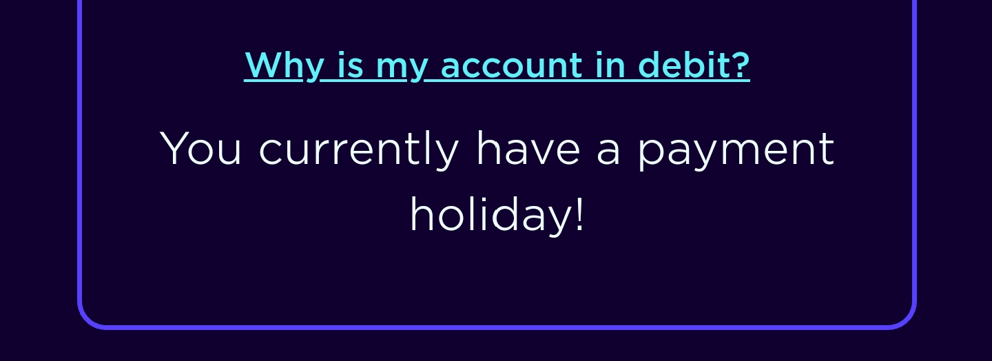 I was expecting it to take our whole month variable direct debit on the 15th but strangely it says we are on a payment holiday.